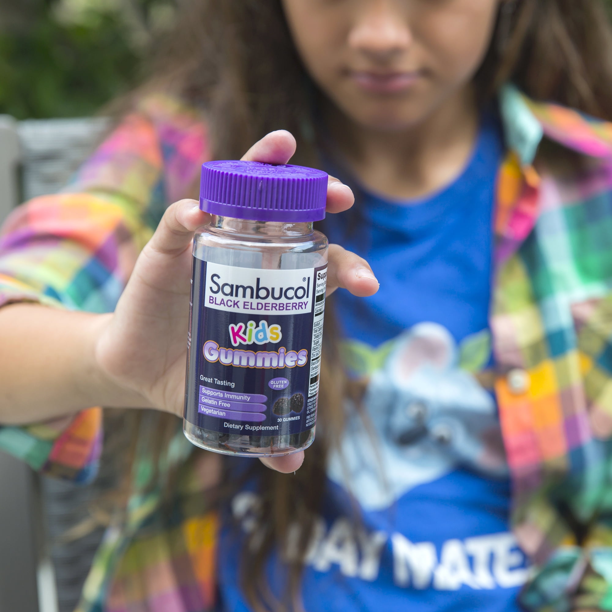 Help keep your child’s immune system strong with delicious, chewy elderberry kids gummies.* Sambucol Black Elderberry Gummies for Kids are made from premium black elderberries (Sambucus nigra) plus Vitamin C and Zinc for powerful immune support.* Gummies are an easy way to give your child the amazing benefits of black elderberry every day. These yummy vegan gummies contain only 1 g of pure cane sugar each, so you can feel good about giving them to your kids. Made specially for children aged 3 and up. Sambucol is The Original Elderberry brand, trusted by millions worldwide. Berry simple. Berry tasty. Berry powerful immune support.*