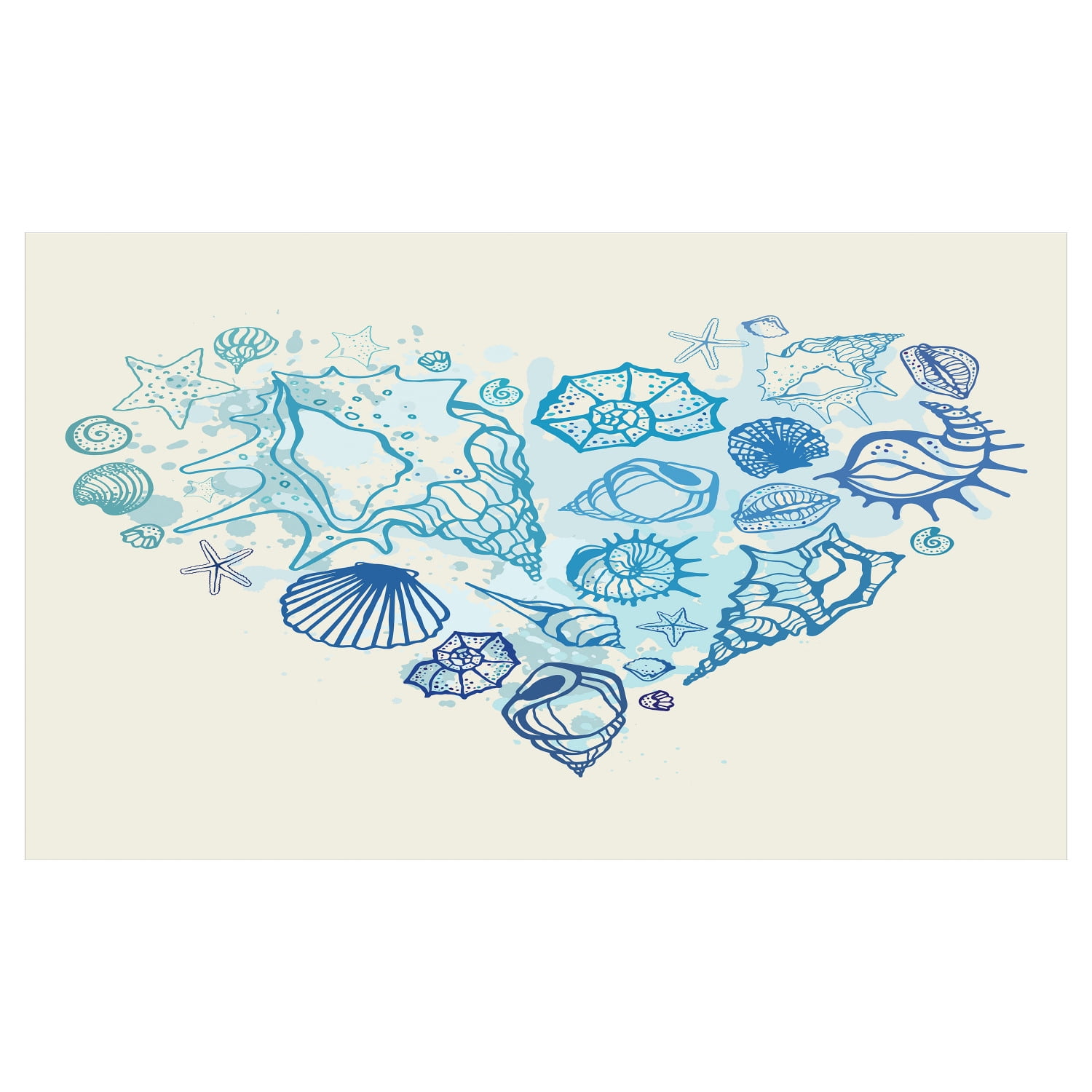 Shell Ceramic Toothbrush Holder, Blue Tones Grunge Heart Shape with Various Seashells Splashed Design Image, Decorative Versatile Countertop for Bathroom, 4.5′ X 2.7′, Eggshell Multicolor
