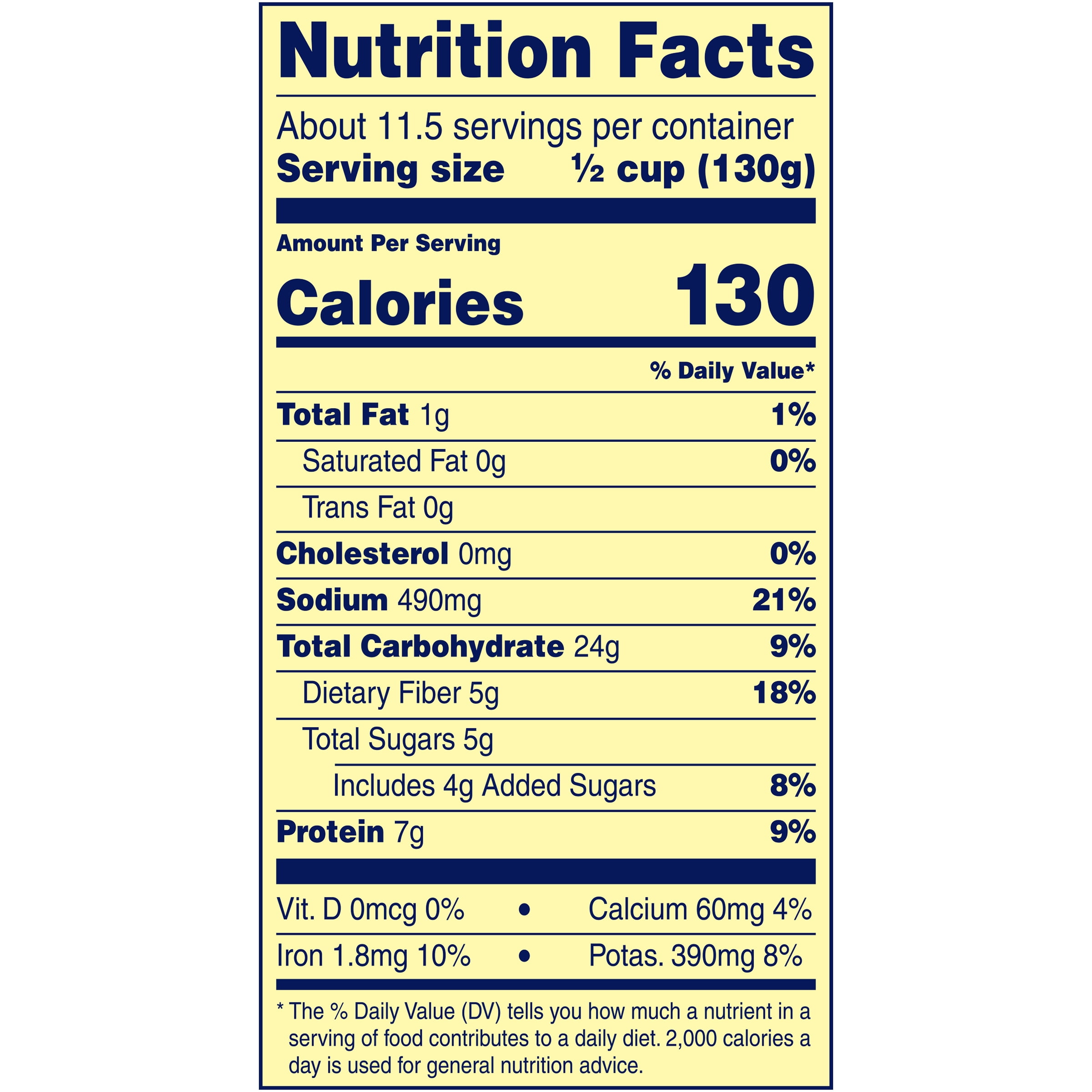 - High fiber and is a good source of iron (See nutrition information for sodium content)