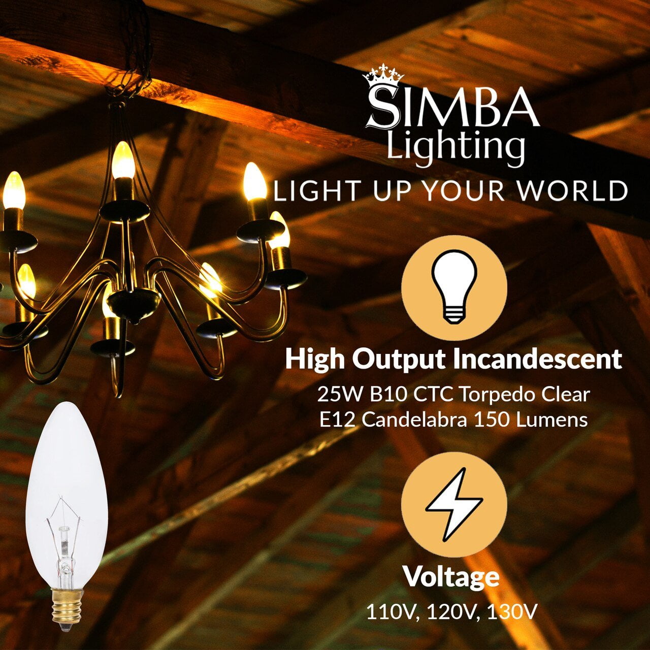 The Simba Lighting B10 torpedo straight blunt tip candelabra light bulb is an excellent addition to your home, office, restaurants, retail shops, etc. These candle light bulbs are used in chandeliers, ceiling fans, wall sconces, pendants, lamps, stylish home décor lighting and general purpose lighting. This light bulb provides a wide 360 degree beam angle.