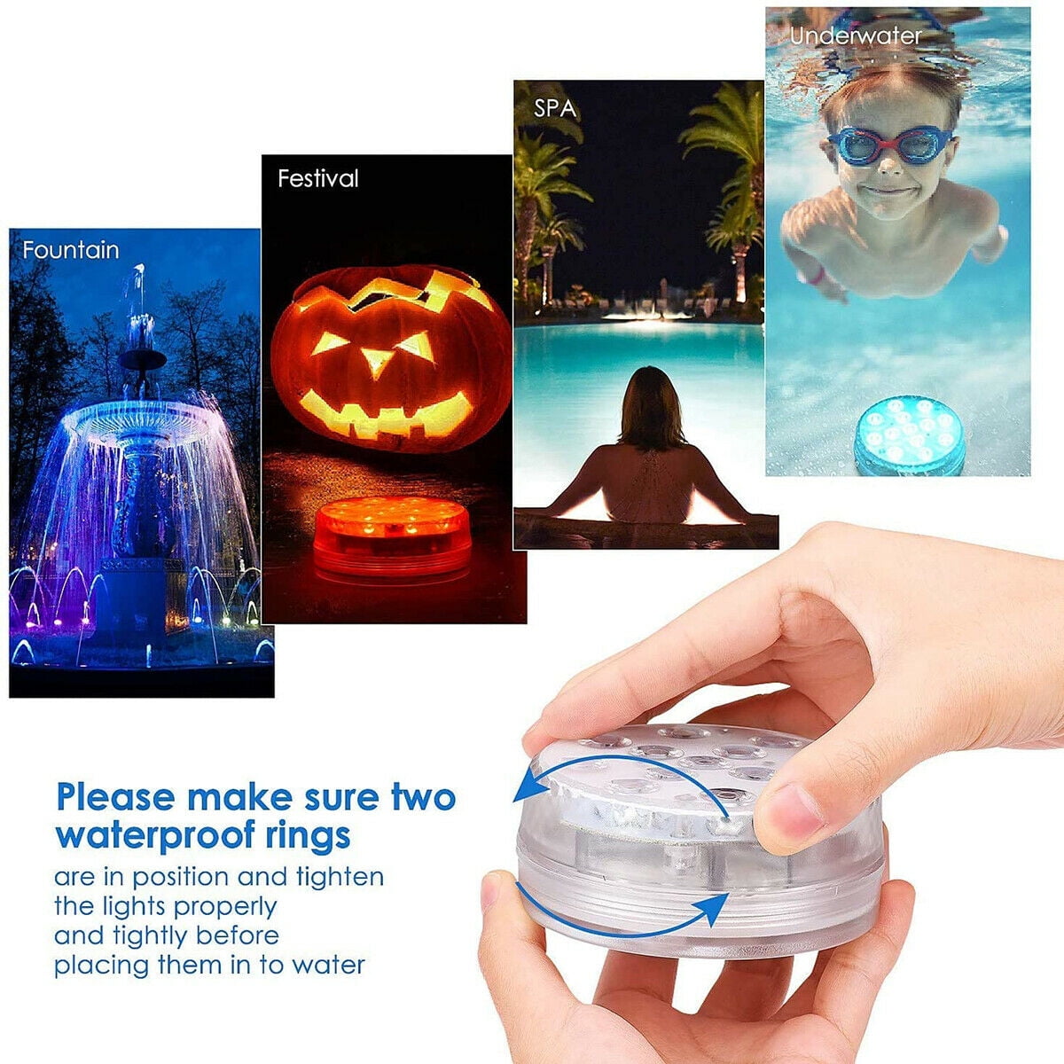 This battery operated flameless LED tea light perfects not just for underwater,pool,hot tub,bathtub and pond decoration! They can be used on vase bases, stages, jewelry counters, and in showrooms, shops, and aquariums or fish tanks! They are also perfect for decorating for a variety of parties, whether they be floral, pool, wedding, Halloween or Christmas theme.