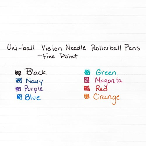 do you prefer a pen with a smaller point that allows you to write in very detailed, even minute, script? if so, then the vision needle rollerball pen is for you! the vision needle roller pen has a needle point that allows for the most precise and detailed writing. the precise tip resists bending or breaking so you can easily rely on it for your everyday needs. like all uni-ball pens, the vision needle pen features uni super ink which protects against water, fading and fraud. this pigment based ink contains particles that form an indelible bond in paper- it cant be broken…ever. the best rollerball pens, vision needle delivers solid vivid colors every time you write.
