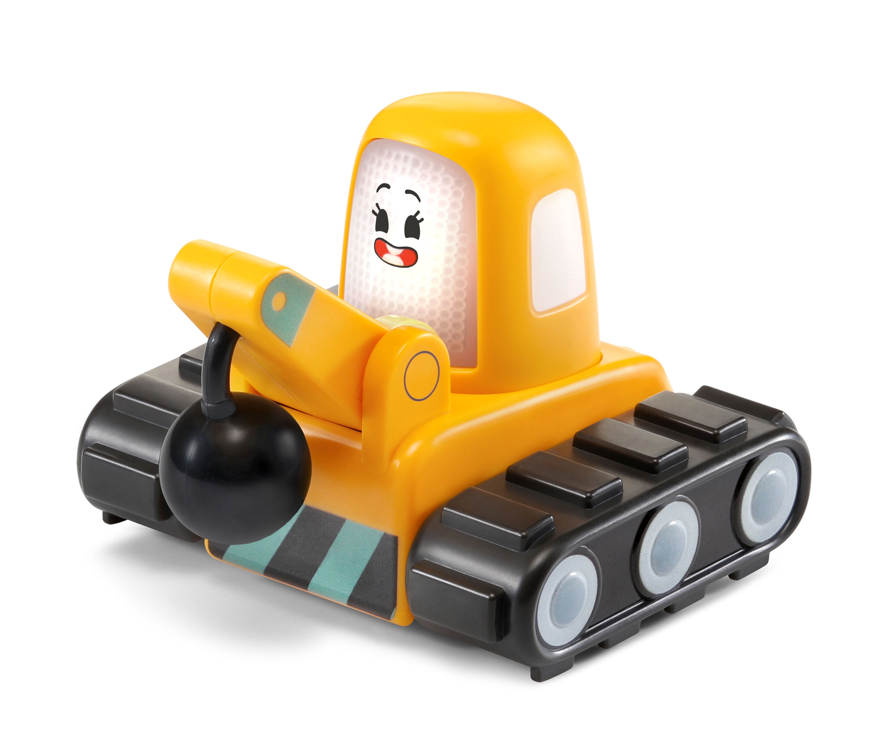 - Press Kimmy’s action button to move her wrecking ball and hear fun sounds while building motor skills