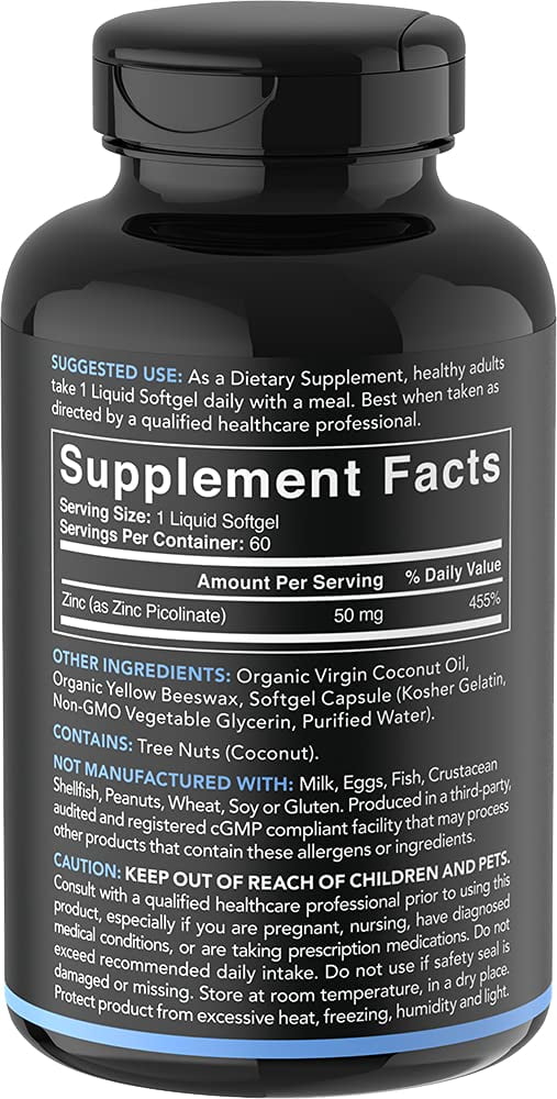 - Sports Research (SR) Zinc Picolinate contains 50mg of this essential mineral to help support Immune health & Enzyme Function