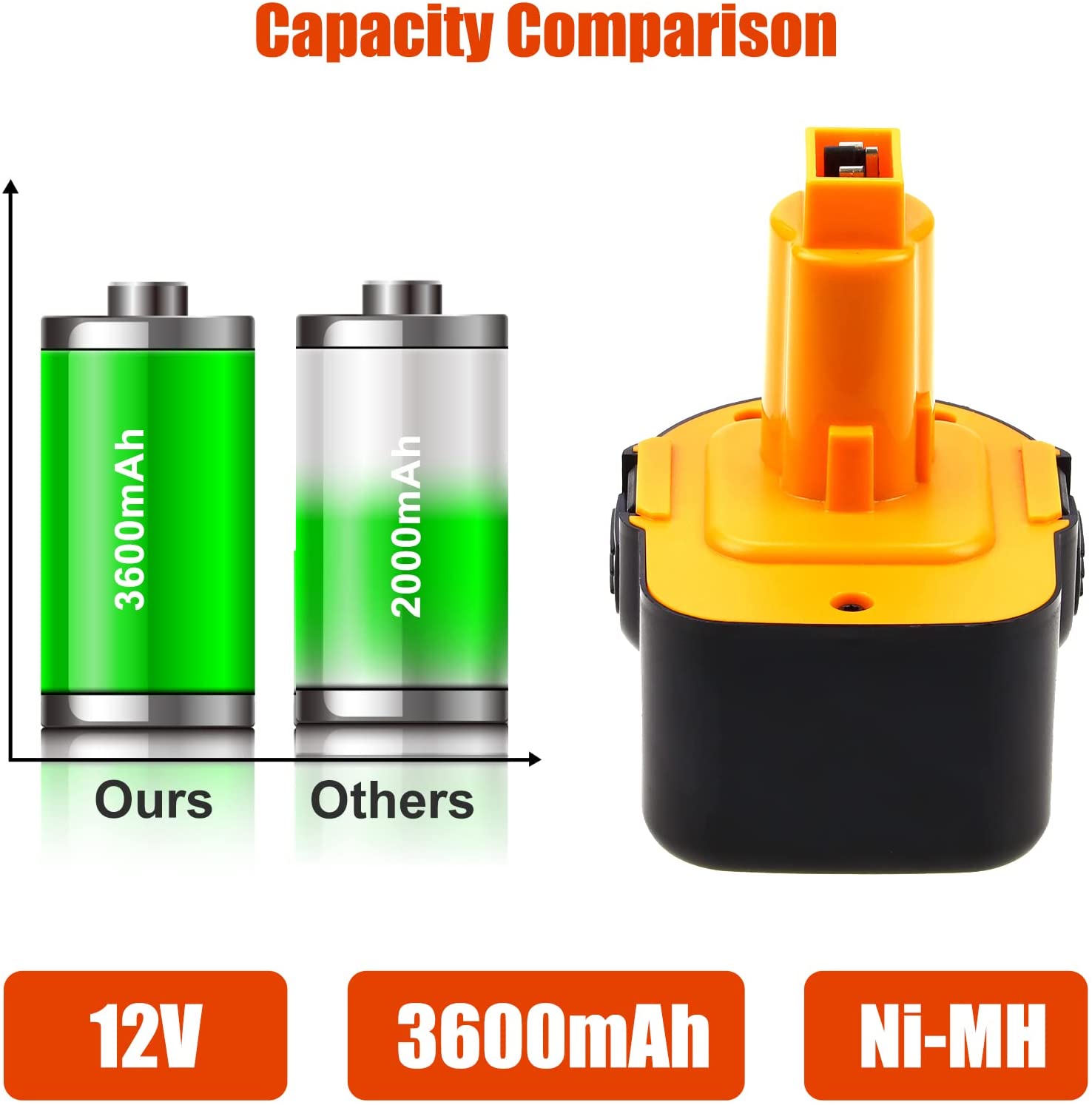 2 Pack 3.6Ah Ni-Mh Replacement Battery Compatible with Dewalt 12V Battery DC9071 DW9072 DW9071 DE9074 DE9037 DE9071 DE9072 DE9075 397745-01 152250-27