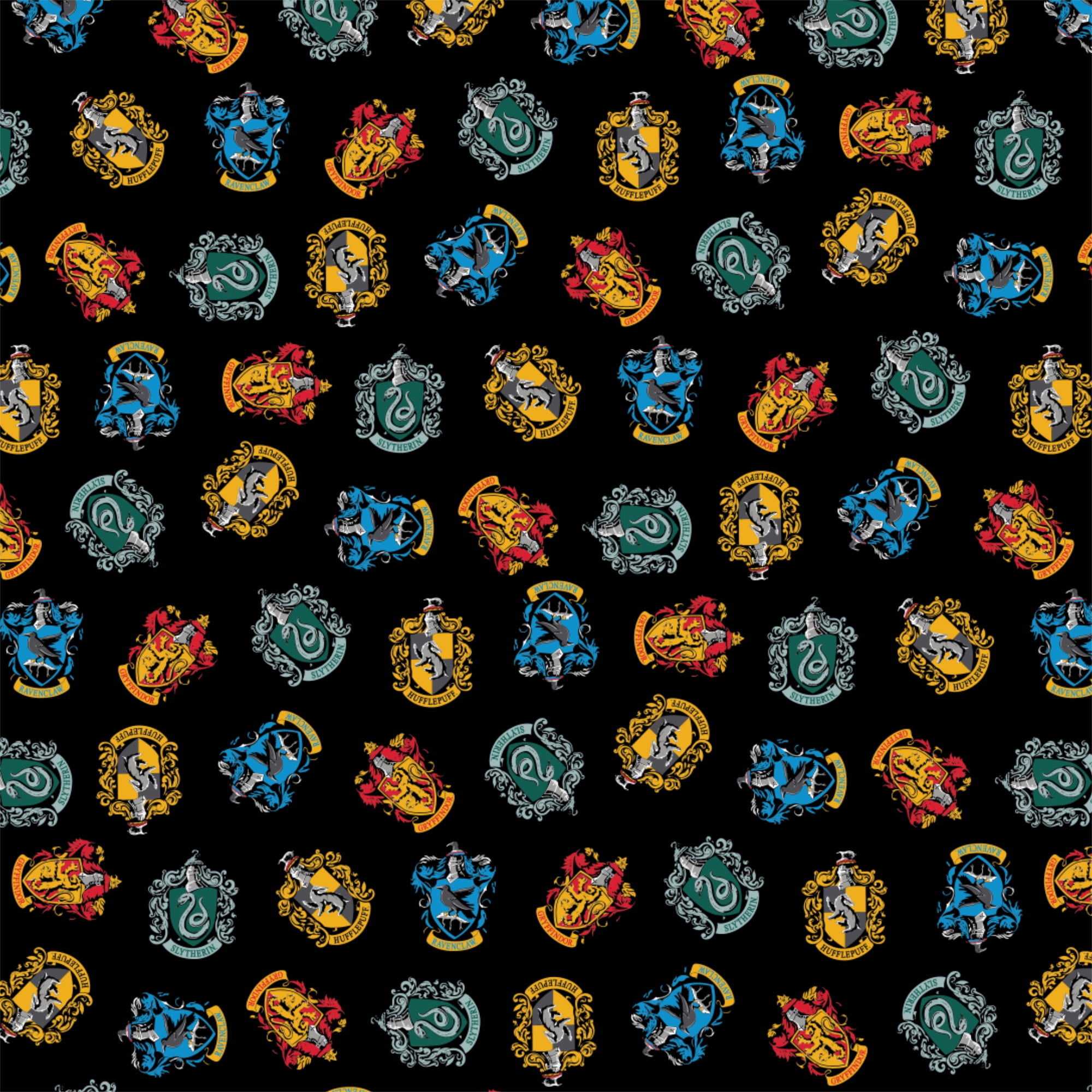Harry Potter School Crest 1 Yard 100% Cotton Fabric Cut in Black, Official Licensed Harry Potter Fabric by Eugene Textiles