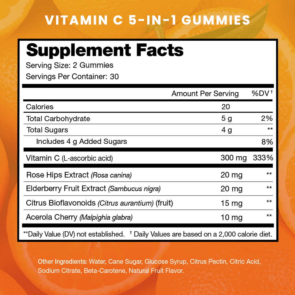 NutraChamps Vitamin C Gummies for Adults & Kids | 5-in-1 Immune System Support with Elderberry, Rosehips, Citrus Bioflavonoids & Acerola Cherry | Vegan Non-GMO Immune Booster Supplement Chewable Gummy