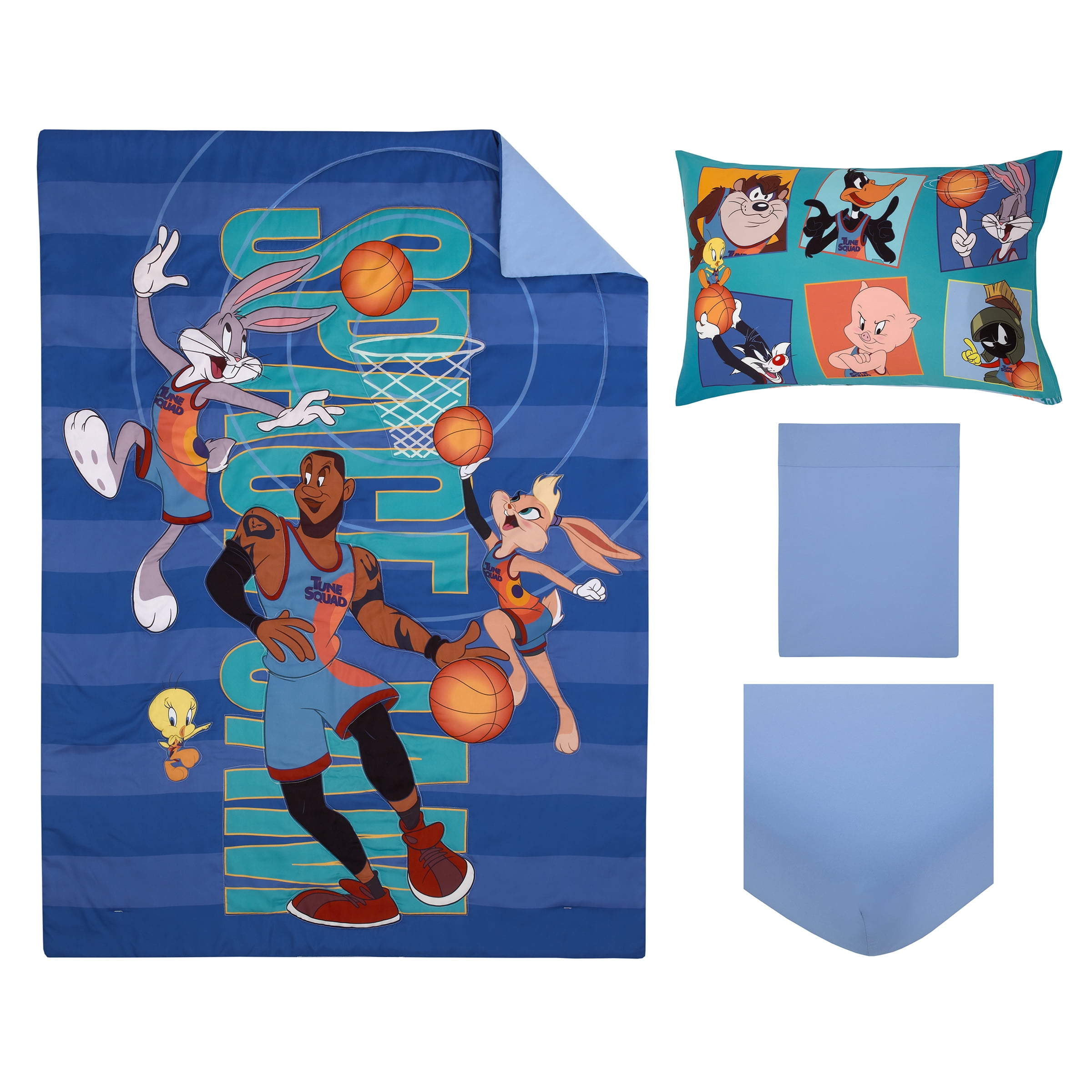 Warner Brothers Space Jam 4 Piece Toddler Bed Set Blue, Orange and Teal