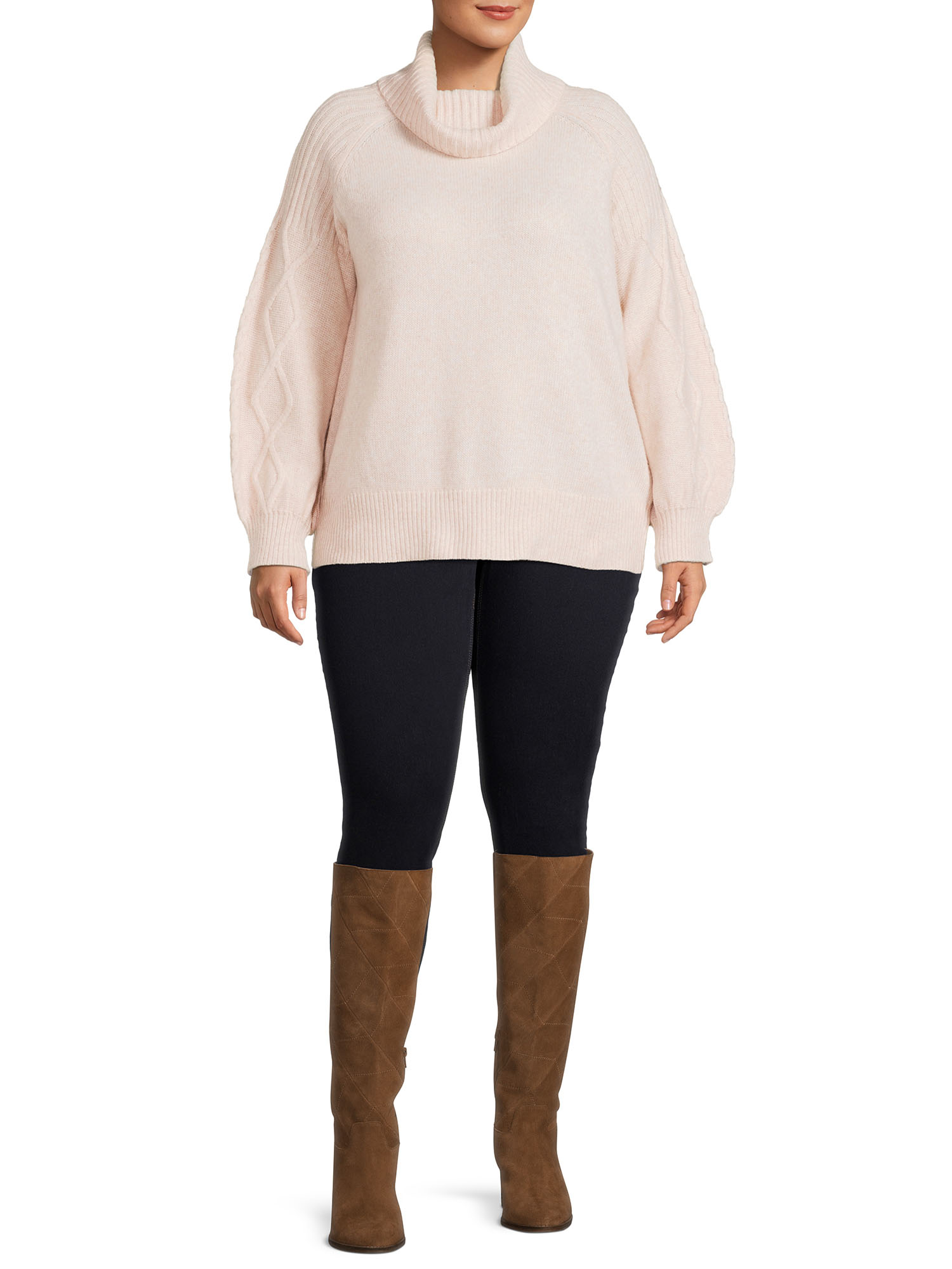 Heart N’ Crush Women’s Plus Size Cable Sleeve Turtleneck Sweater