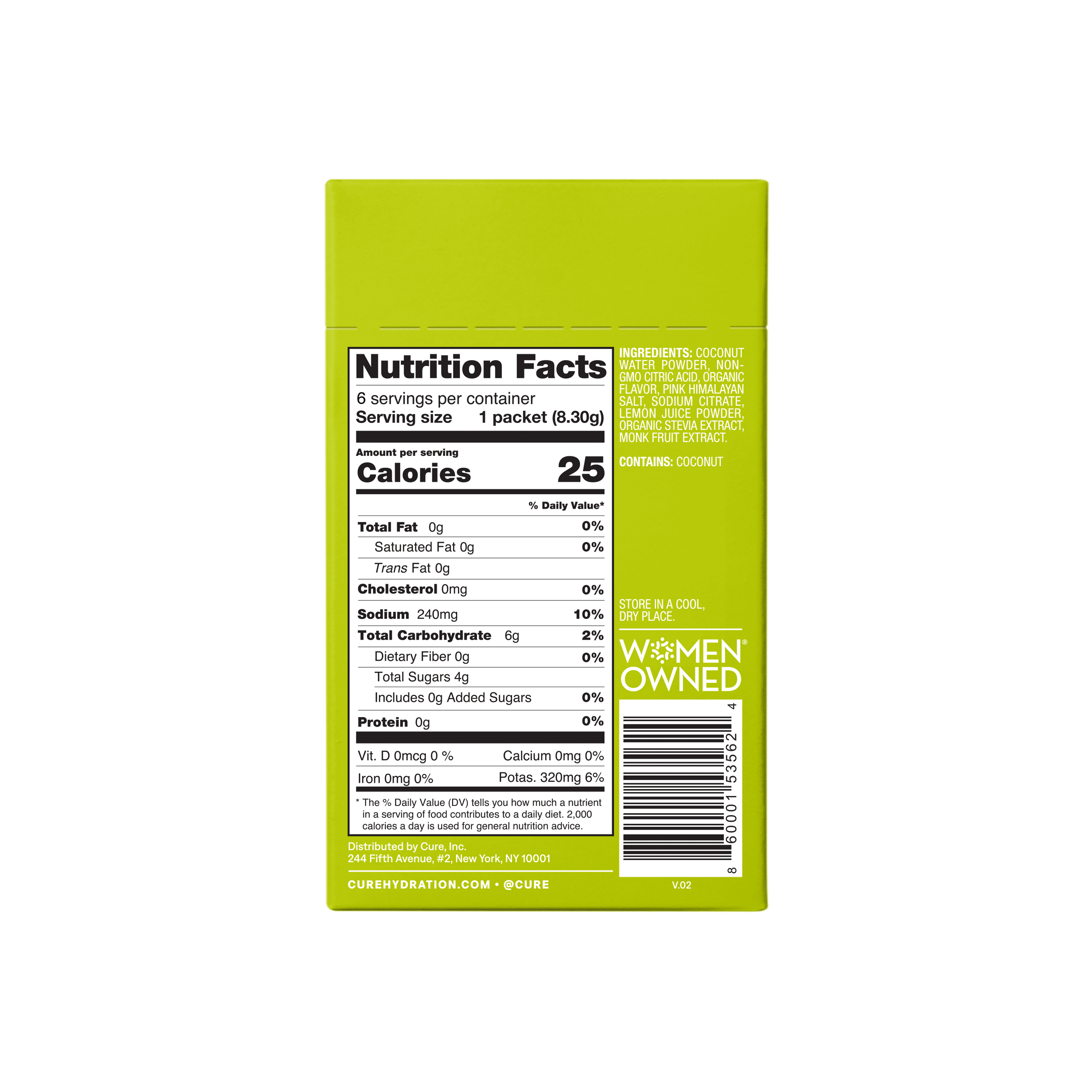 Cure Hydration Electrolyte Powder Drink Mix, Lime, 6 Packets