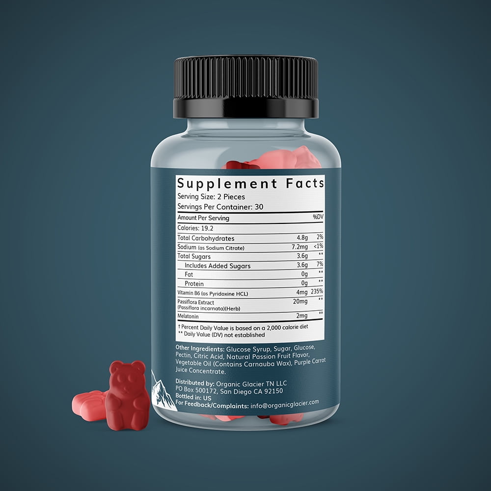 Organic Glacier – Melatonin and Passiflora Gummies – Sleeping Aid/Melatonin