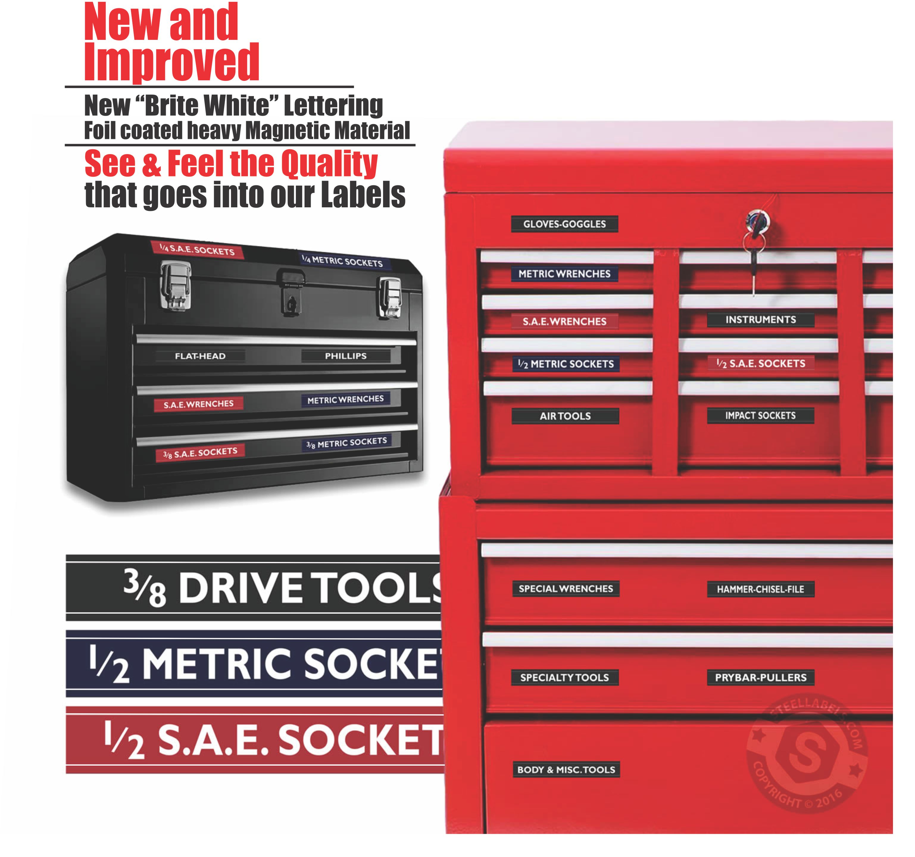 Chrome Foil Tool Box Decals, Label and organize your toolbox, never search a drawer for tools again. made from tough Foil Material, stickers fit all Craftsman, Snap-On, & Cornwell chest, Stainless, Al