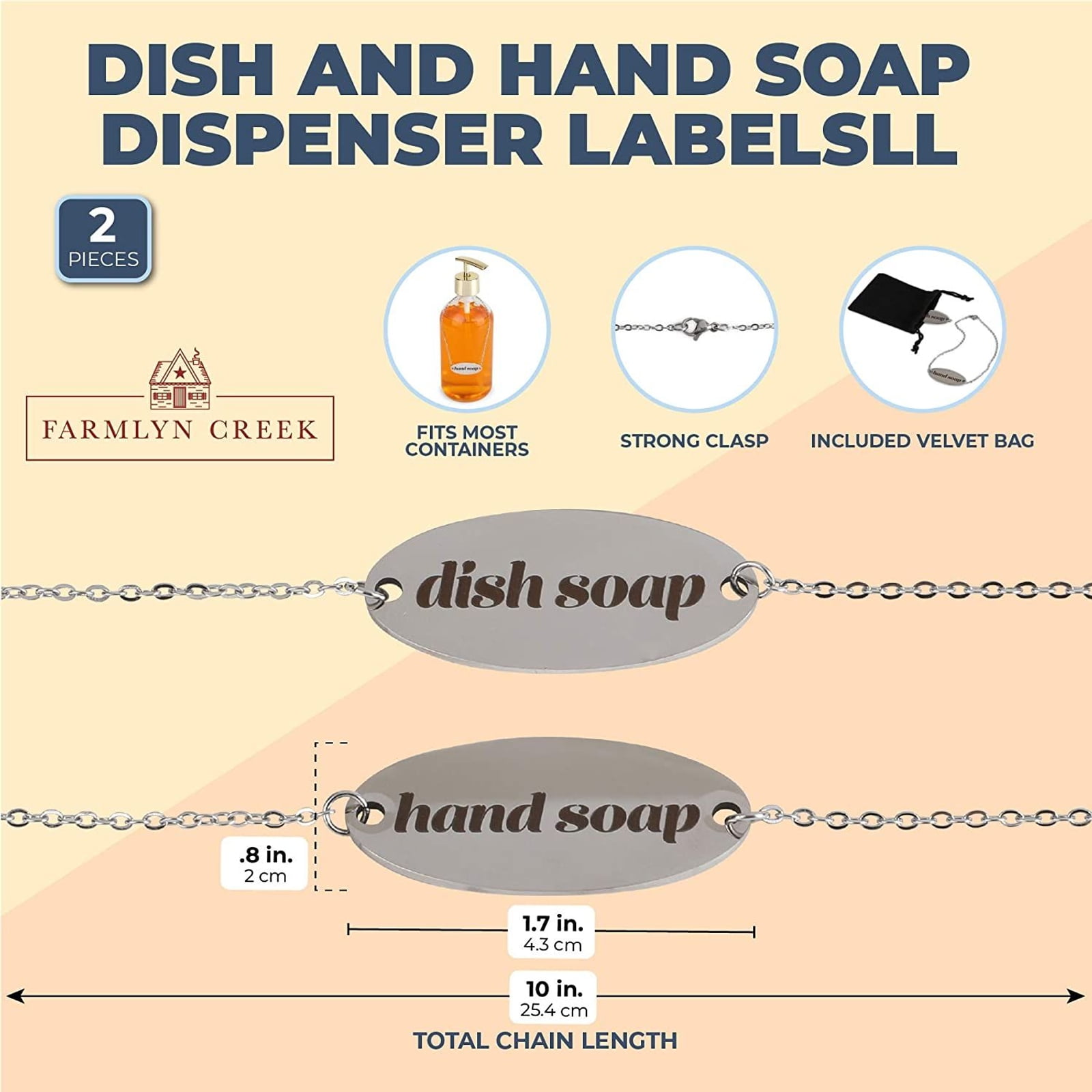 2-Pack Stainless Steel Dish & Hand Soap Dispenser Label Tags for Kitchen, Silver 1.7’x0.8′