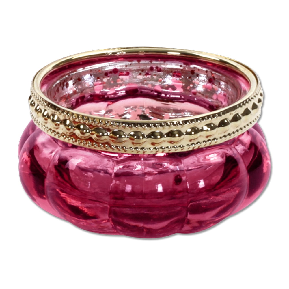 Koyal Wholesale Bloom Tea Light Holders, 6−Pack Petite Antique Pink Glass Tealight Cup with Gold Rim, Vintage, Boho
