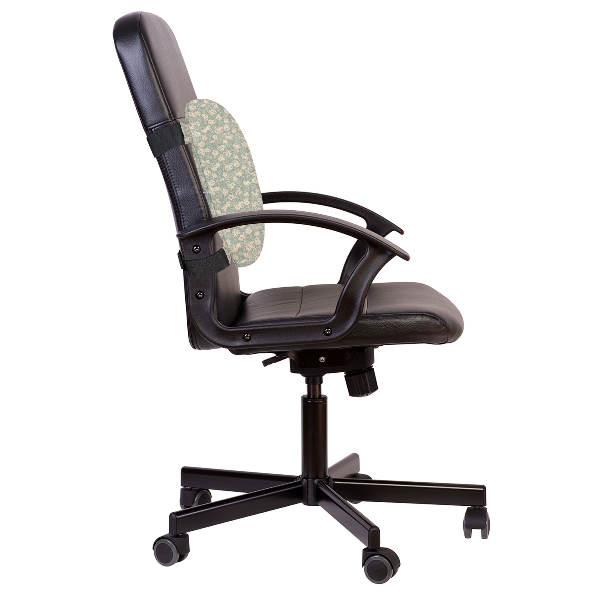 Vine Lumbar Pillow, Antique Pastel Gourd Field Pattern with Large Leaves and Spiral Vines, Soft Back Cushion for Office Chairs with Adjustable Straps, 14′ x 13′, Almond Green and Beige, by Ambesonne