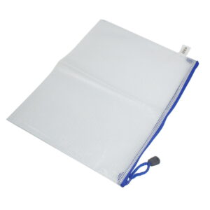 Unique Bargains Unique Bargains Gridding Zippered A4 Paper File Document Holder White Blue Soft Plastic Bag