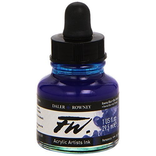 Daler-Rowney FW Acrylic Artists Ink, 1 oz. Dropper-Top Bottle, Rowney Blue