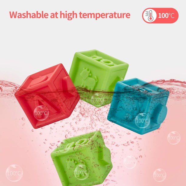 Squeeze and Sound–These building blocks are soft enough and easy to squeeze. Easy for baby’s little hands to hold. The built-in sound generator will create "BiBi…" sound when squeezed to attract the baby’s attention.