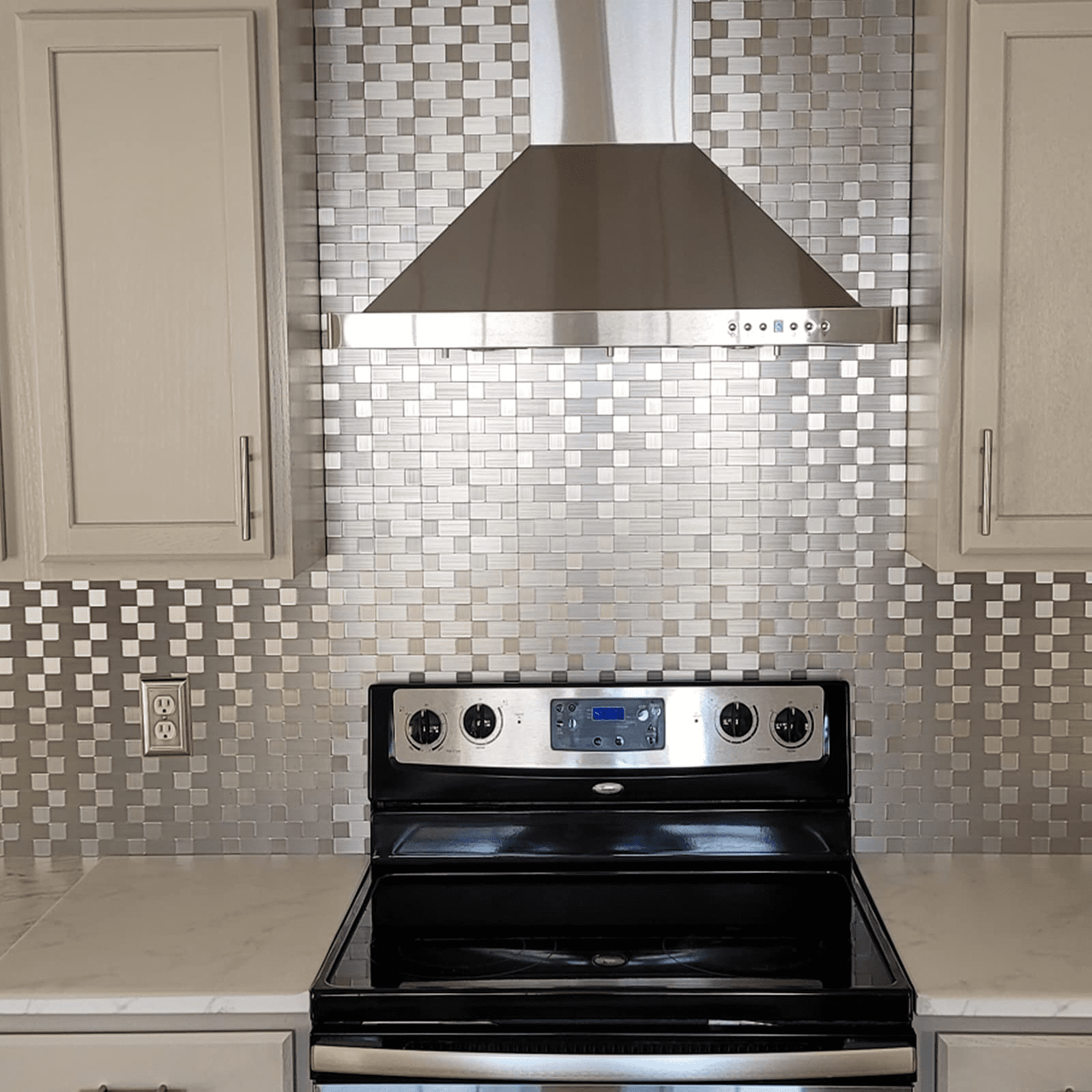 Art3d backsplash tile is an easy DIY wall covering material, this kind of metal wall tile is made from the aluminum composite panel with self-adhesive back on wall installation. The Art3d tiles are specially designed for kitchen backsplashes or bathroom backsplashes, the tile can also be used in another place such as accent walls, cabinet door coverings, mirror or tub surrounds.