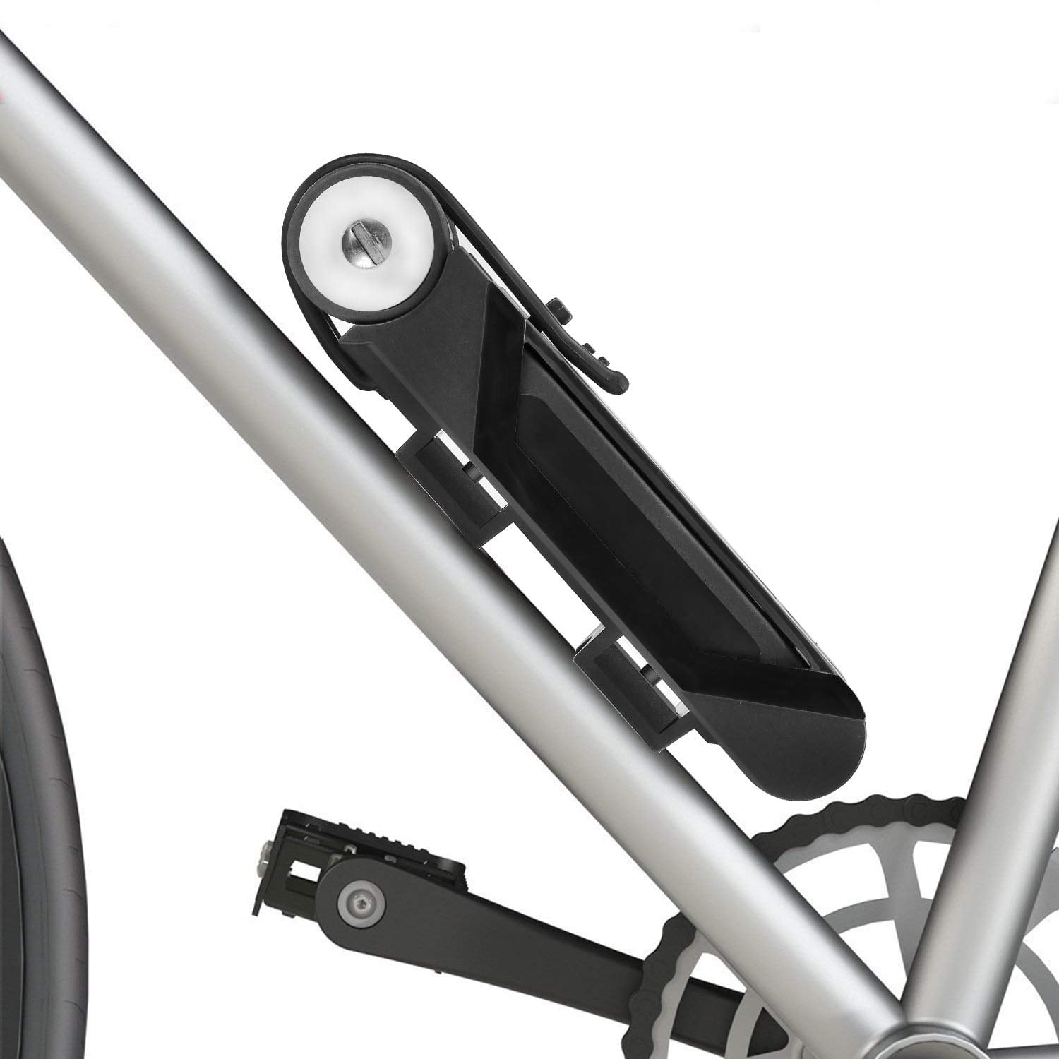 Strong and high toughness alloy structure steel provides extremely resistant to attacks involving sawing. Provided with a flexible mounting bracket with non-slip velcro straps & screws for easy storage while cycling. Water resistant & anti-scratch abs rubber lacquer will not cause any scratch on your valuables and protect the lock from rust, and corrosion. Designed with VSR technology, the rivets can stand up against strong sawing and cutting. Strong drill-resistant locking cylinder. Total weight of 865g, a true athlete compared to other locks. Compact design for easy carrying and storage. Two laser-cut keys are supplied for convenience and long-time use. Ideal for indoor and outdoor use, such as for locking gates & fences, grills & lawnmowers, tools, tool boxes & ladders, skateboards, sports equipment, and any other valuables.