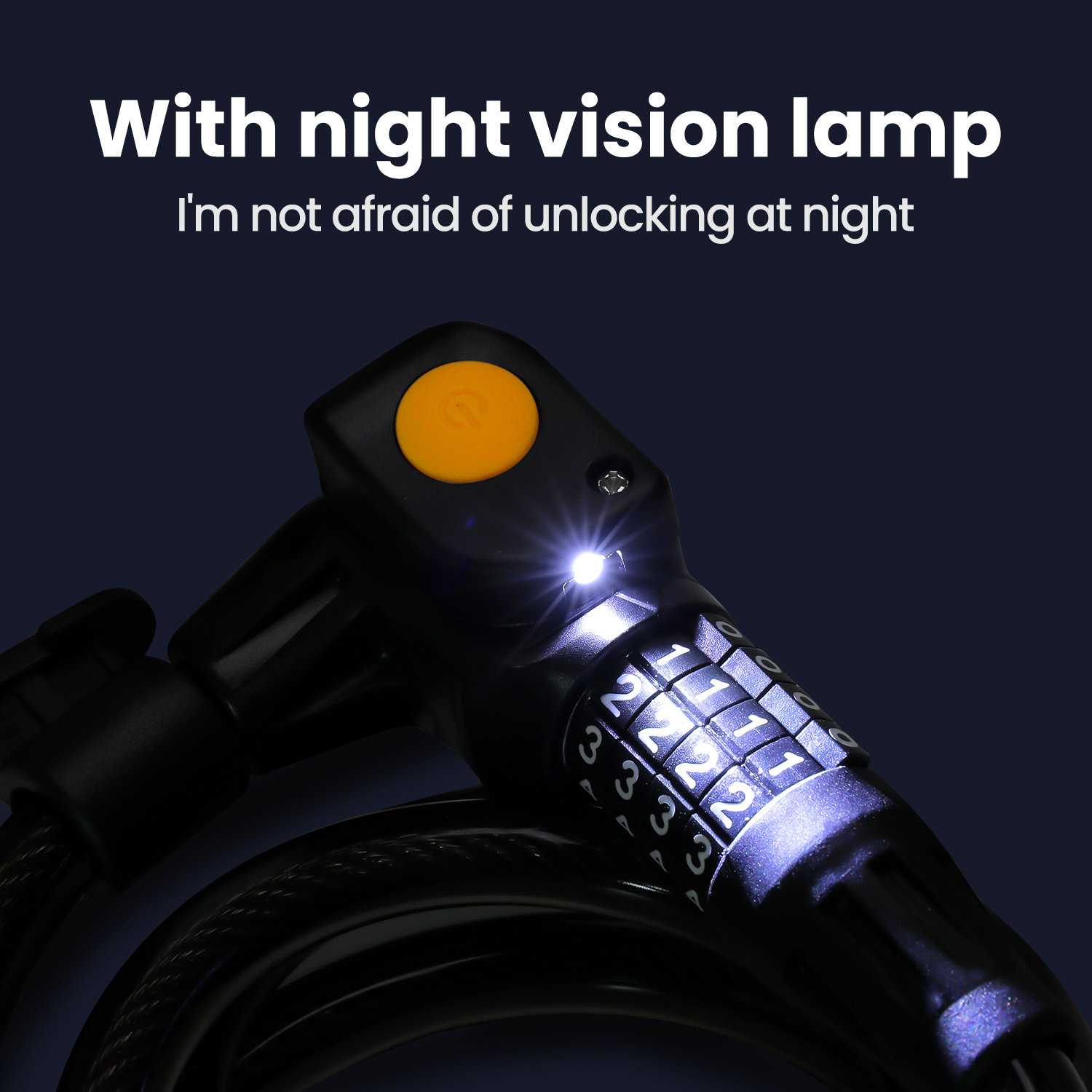 Meticulous Design: Equipped with light, it can be easily unlocked in the dark. This cable bike lock comes with a key in case the combination is lost or forgotten.