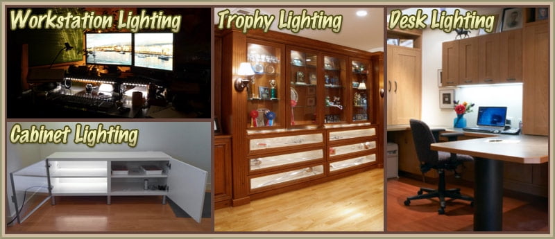 -***Office:*** Under Desk Hutch, In Drawers, Bookshelf, Reading Light, Glass Case Lighting