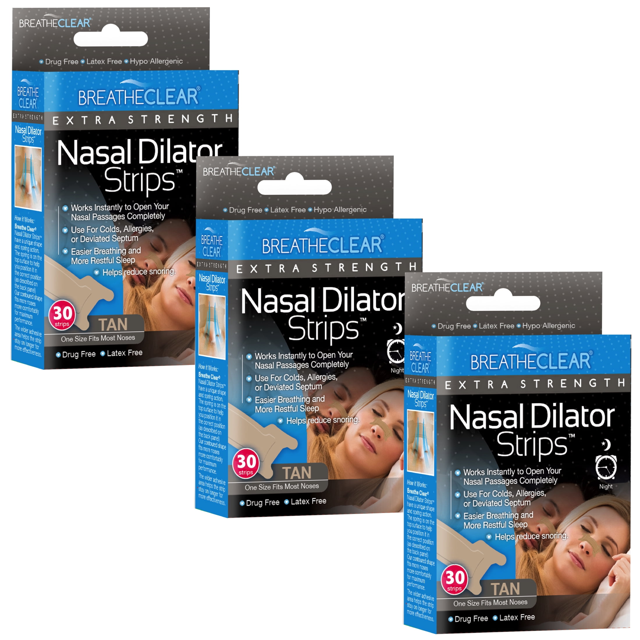 - Breathe Clear nasal strips fit most adult noses, lifts and opens airways supporting a better night’s rest and may reduce snoring. 3-30 ct box for a full 3-month’s supply. TAN colored