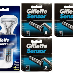 Gillette Sensor Excel Razor w/ 3 Cartridges + Gillette Sensor 5 Ct. Refill Blades (Pack of 3)