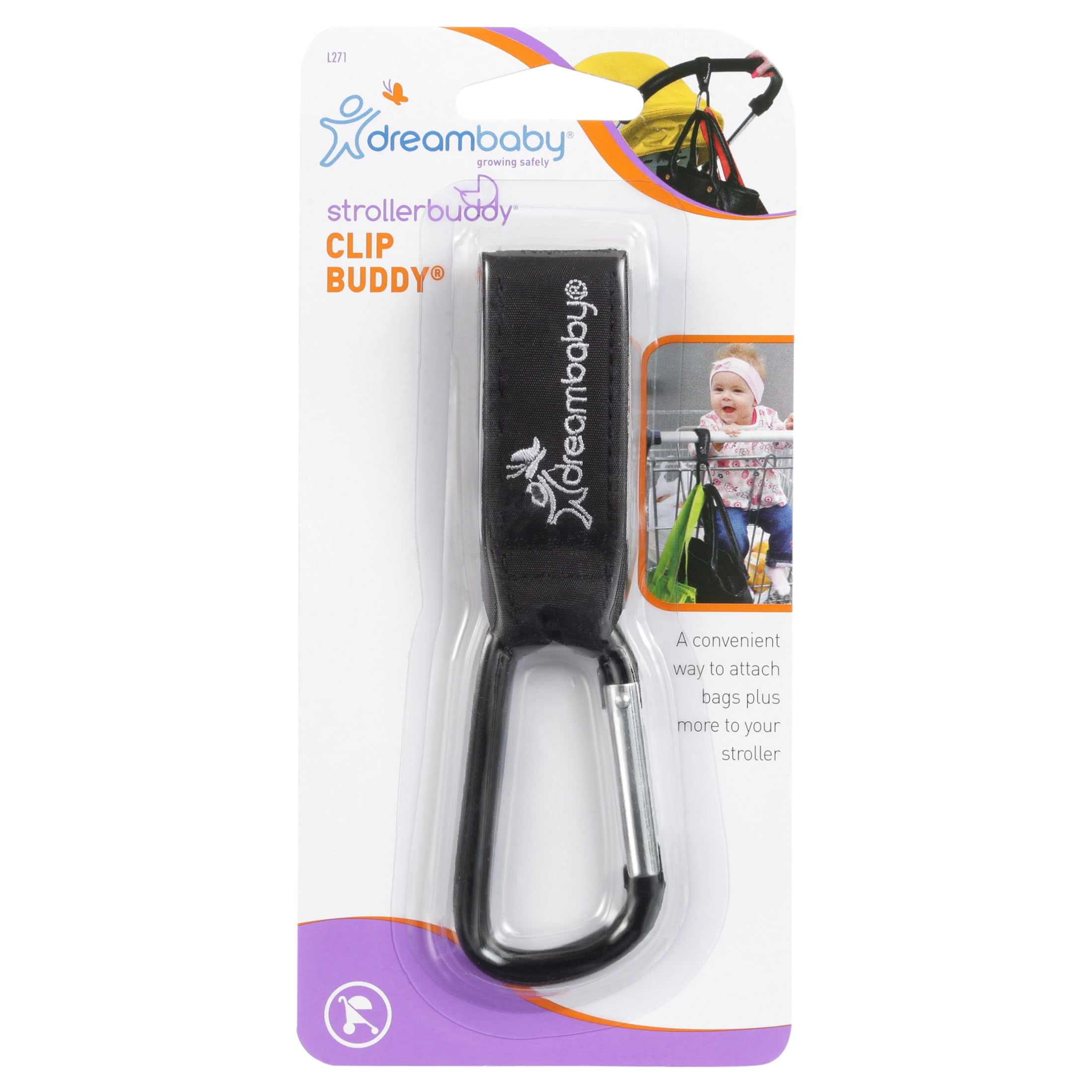 This Dreambaby Clip Buddy makes it easier to carry your belongings while running errands, shopping, and more. It has a soft, heavy-duty handle that fits onto any stroller to hold your diaper bag, grocery bag, purse, and more. Made with super-strong material, it is durable and has an exceptional holding strength. It also features padding to create friction and prevent it from sliding down. This stroller clip is lightweight, versatile, and can easily be used with one hand.
