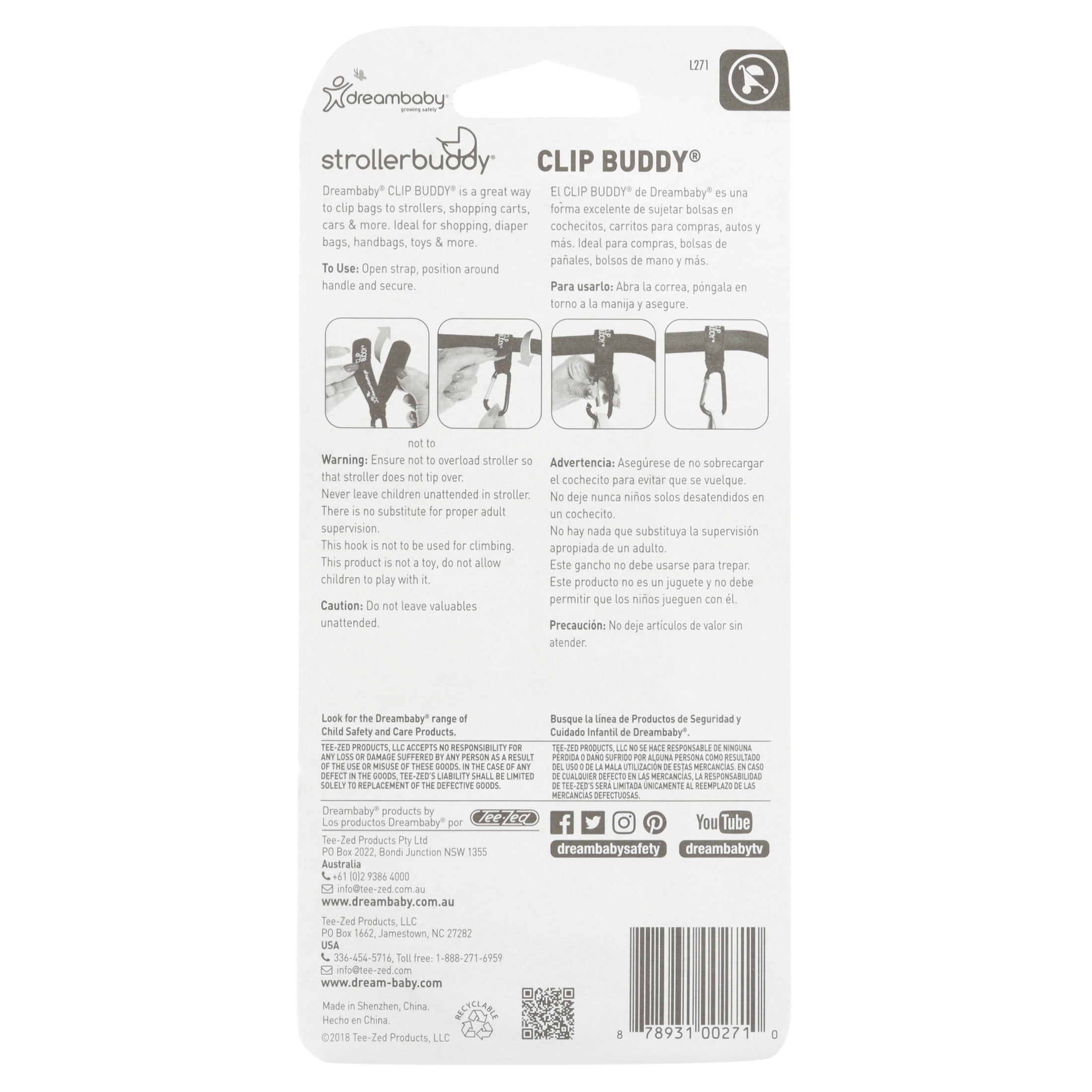 - Simply thread nappy bags, shopping, or handbags onto the Clip Buddy
