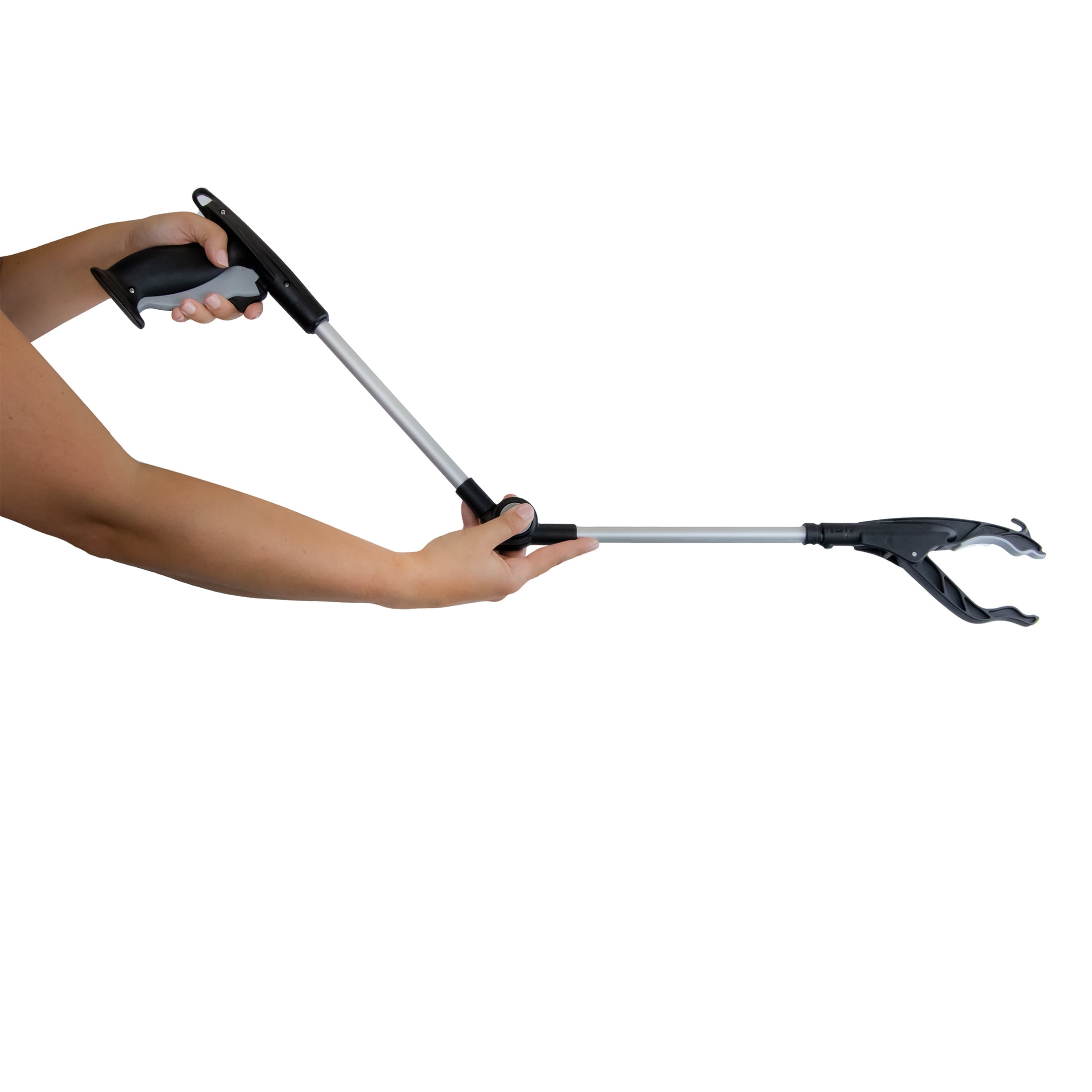 Extend your reach with the Equate Folding Reaching tool. Reach high or low without bending, ladders or step stools. The Equate Folding Reaching tool has an intuitive easy-lock trigger grip to improve your grip with just the press of one finger. The elbow joint allows this convenient reacher to fold for easier storage and portability. It also has rubber-coated jaws for a slip-resistant grip and a built-in magnet to help grab smaller metal items. Get what you need faster and easier with the Equate Folding Reacher.