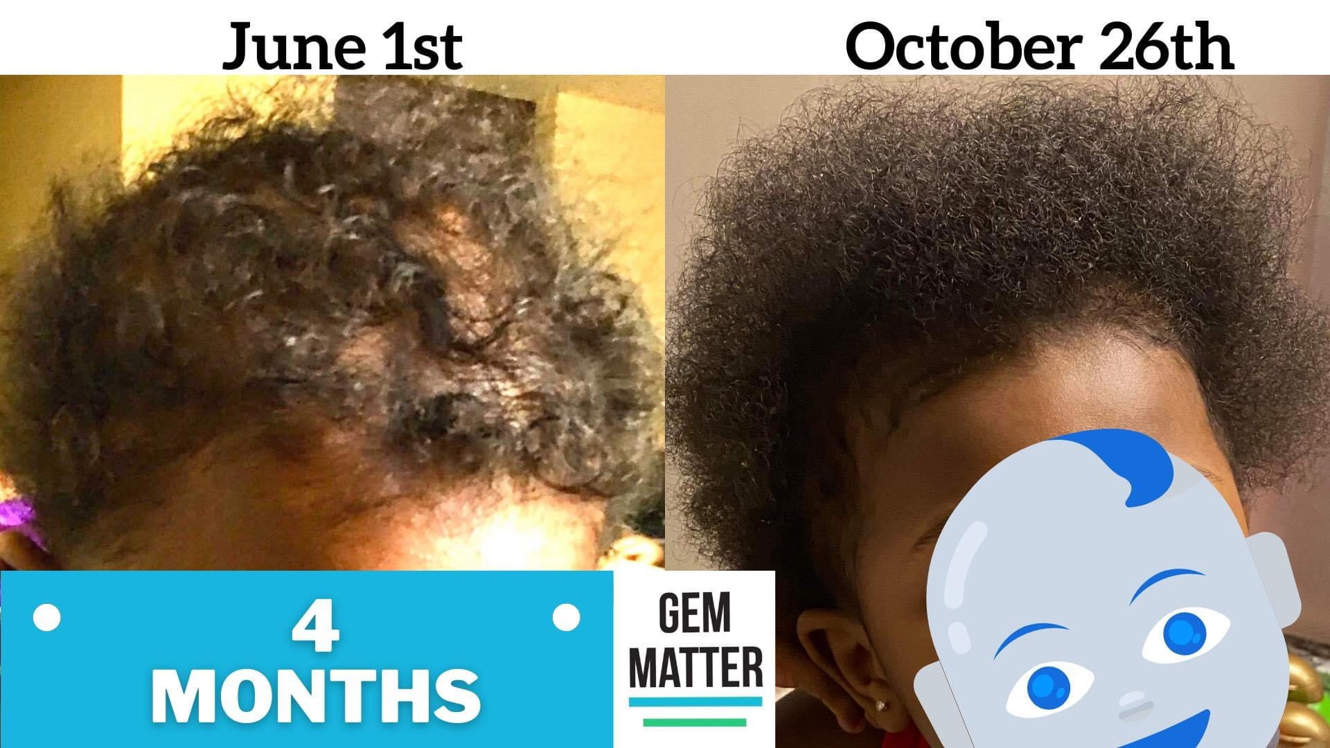 Gem Matter is a home blend, of wild crafted herbs, that are infused in olive oil, and Grapeseed oil. We use herbs that are known to stimulate hair growth and restore even some of the oldest hair follicles. The healing herbs used, help treat damaged hair follicles. When the follicle is repaired, the hair growth cycle begins again. Gem matter contains no toxic or harmful chemicals and is completely natural. It’s great for all hair types and should be applied twice daily for the best results.Hair growth