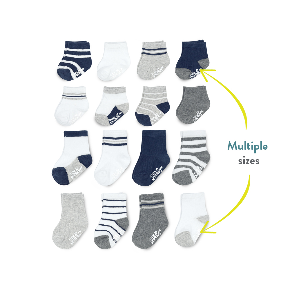 Is there anything cuter than tiny socks for tiny toes? It’s big comfort for little feet with sporty, colorful socks for baby boys from Goldbug. This value 16-pack of grow-with-me socks features a stretch knit that’s super soft and comfortable.