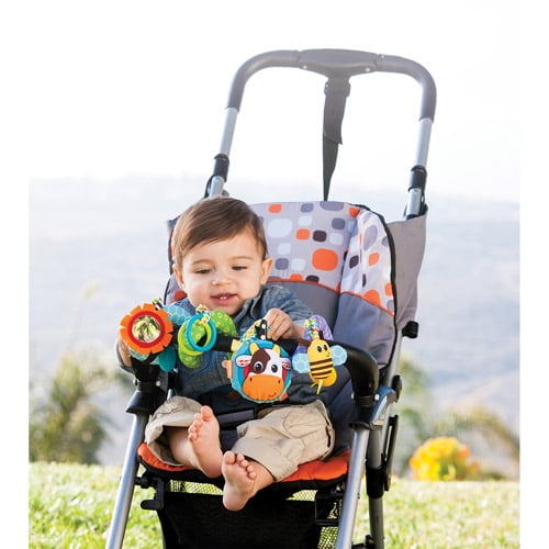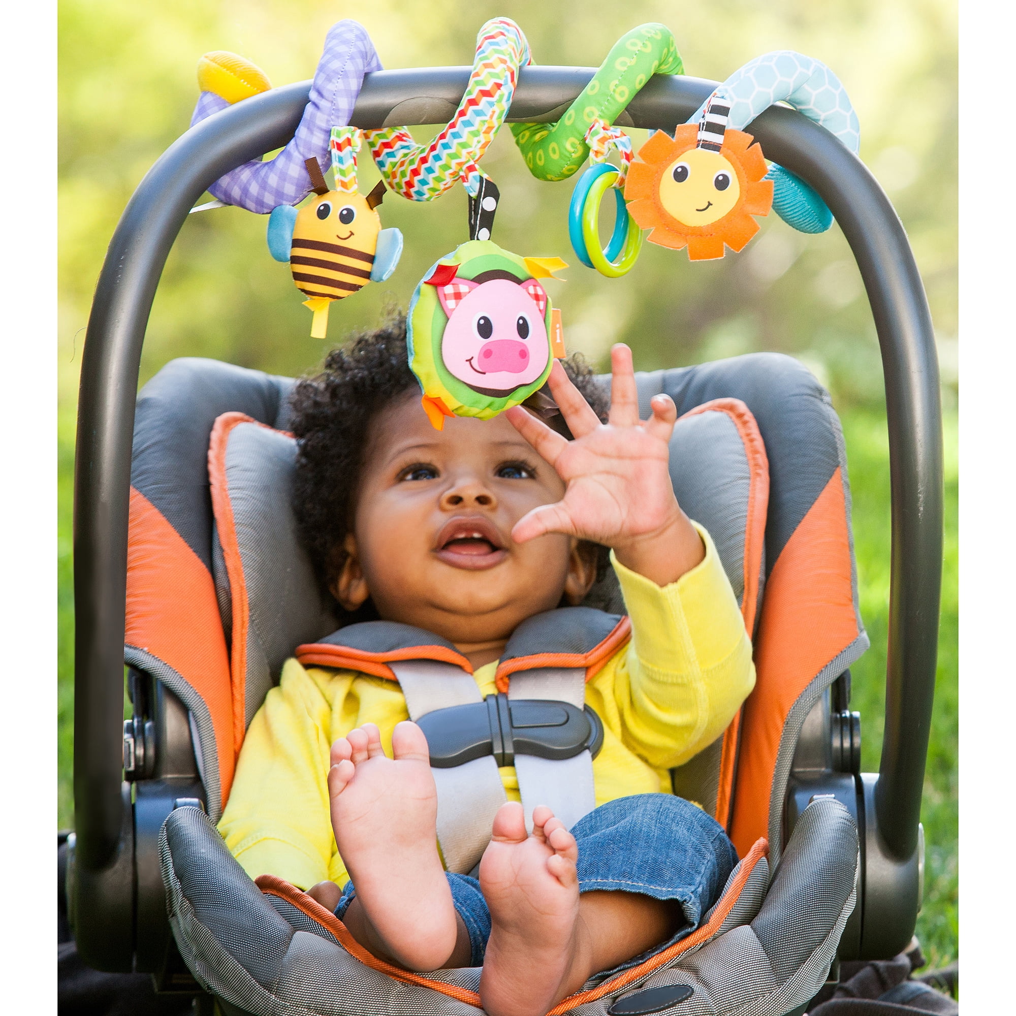 This Infantino Topsy Turvy Spiral Activity Toy features four unique toys that rattle, crinkle and swing. It is a fun and playful way to develop visual tracking and gross motor skills. This Infantino toy is lightweight and easy for your baby to hold while looking at all the vibrant colors. It would make an ideal gift for your little one or for any parents to be at a baby shower. This toy is ideal for when you’re on the go, in the stroller or car seat or just to play with at home. It encourages grabbing and reaching and will keep your little one entertained for hours.