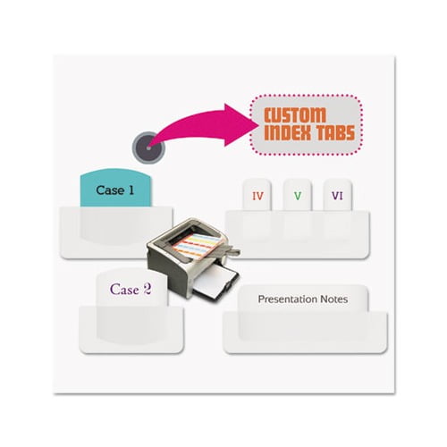 Create permanent professional-quality indexes with these sturdy plastic tabs. Self-adhesive tabs attach to any page to organize and index in a flash. Templates compatible with Windows version of WordPerfect and Microsoft Word. Laser Compatible7/16 x 1 tab size. File Insert/Tab Type: Index Tabs Tab Cut: 1/12-Cut Colors: White Color Family: White.