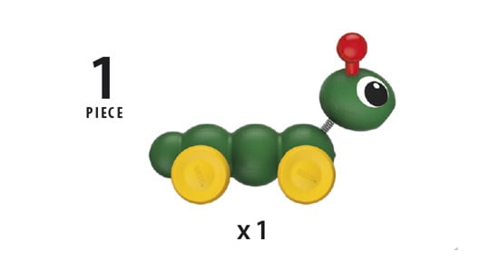 The Mini Caterpillar push-along from Brio is classic play for today’s toddler. This adorable and friendly Caterpillar has bright, vibrant colors that appeal to young children. The bright red wheels work on any floor surface. Handcrafted to the exacting quality standards you’d expect from Brio, this durable playroom heirloom will be enjoyed for generations. It’s decorated with 6 coats of non-toxic paint for a long lasting, chip resistant, vibrant glossy finish. The perfect size for the active, imaginative toddler, they’ll learn to control movement and develop motor skills.Meet the Mini Caterpillar! Small enough for tiny hands, large enough to make a big impression. Watch this classic BRIO toy bob its head up and down as it gets pushed forward.