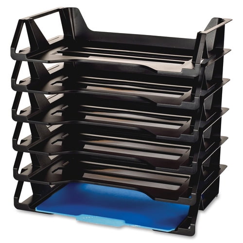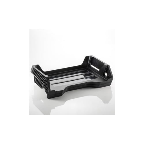 Clean lines and compact footprint makes Achieva Letter Trays an efficient means to organize your work space. Stylish, side-loading trays are stackable to increase filing area and self-stacking so no supports are needed. Built-in handles make trays easily portable. Ribbed base design prevents papers from sticking to the bottom of the tray. Curved front allows papers or folders to be easily accessed. More from the Manufacturer