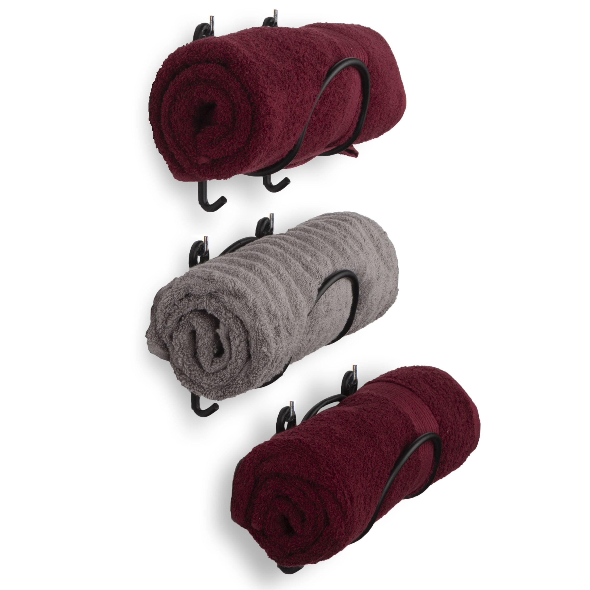 3 pieces black towel holder set works well for bath towels set, hand towels, washcloths, or bath sheets to have additional space in the bathroom storage cabinet. Round arms look simple yet decorative and towel holder for bathroom wall can store up to six bath towels when rolled up. Keep towels within reach by hanging BOTO towel racks next to the shower. Mount towel bar set just an arm’s reach away from the sink, rolled-up bathroom towel set to make smart use of the unused vertical surface. Towel rack set comes with all necessary hardware set that we send for easy installation.