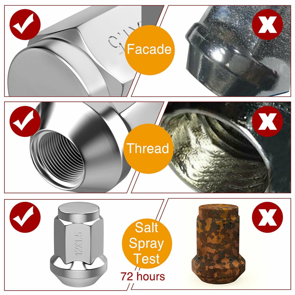 Fit for most vehicle with 12×1.5 wheel studs and wheel that utilize a standard size 60 degree conical s-eat lug nut.