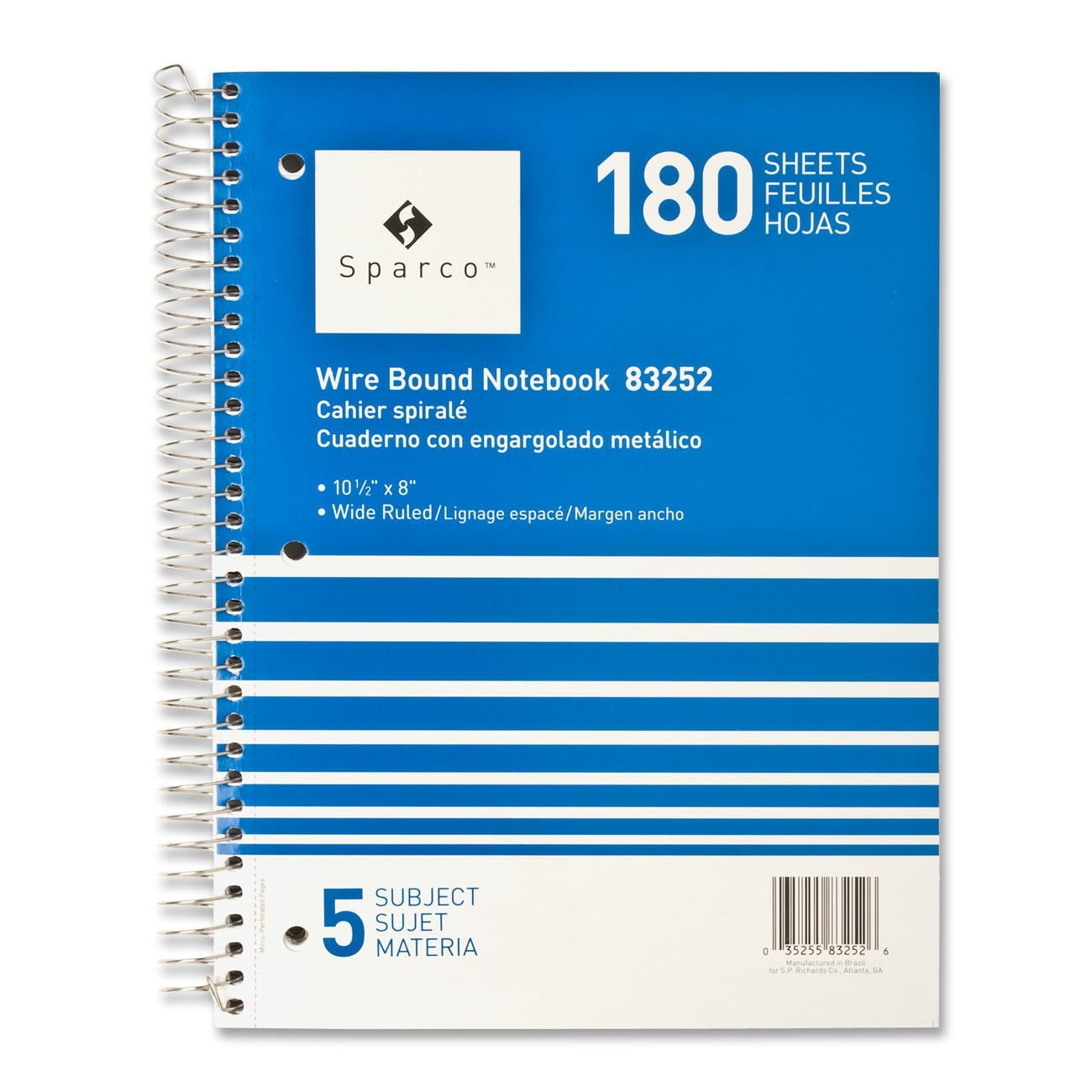 For all your note taking needs Microperforated sheets provide a clean, easy tear. Ruled lines encourage neat writing. Durable wire coil binding twist looped to resist snags, yet easy to open and flip. One-Subject. Book/Pad Binding Type: Wirebound Book/Pad Binding Edge: Side Book/Pad Sheet Size: 10.5 x 8 Book/Pad Subjects/Sections: 1.
