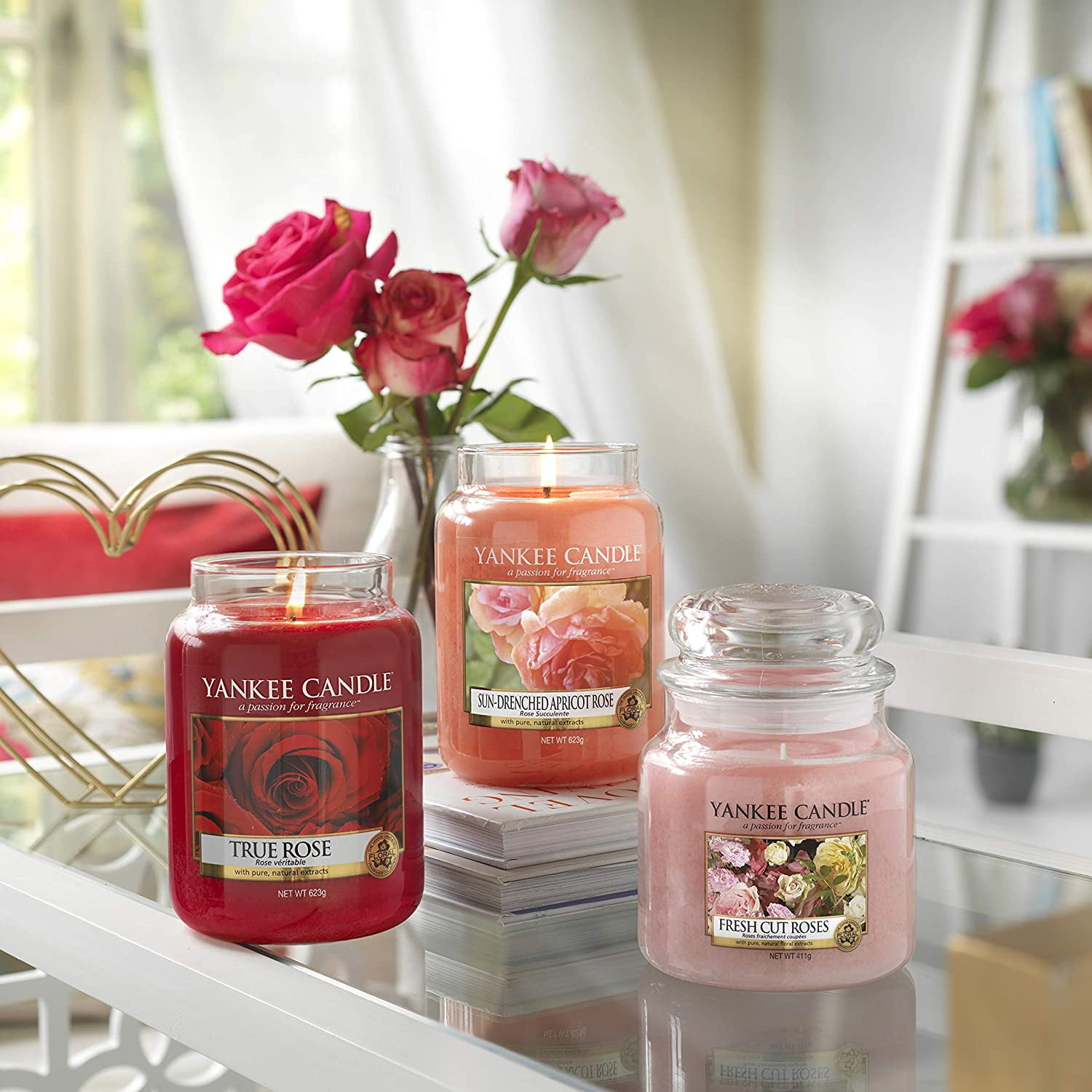 Yankee Candle – Fresh Cut Roses Medium Jar Candle (411g)