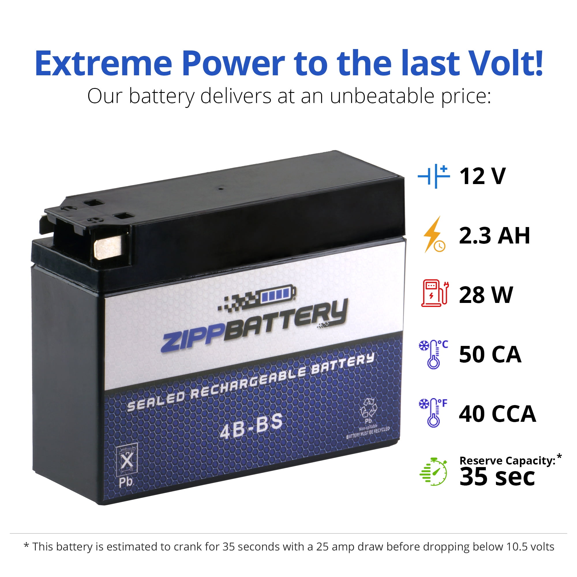 Zipp Battery YT4B-BS (4B-BS 12 Volts,2.3 Ah, 40 CCA) Motorcycle Battery for Yamaha Sr400 400cc Year (15-17)