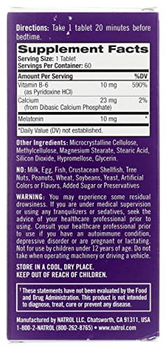 Natrol Melatonin Advanced Sleep Tablets with Vitamin B6, Helps You Fall Asleep Faster, Stay Asleep Longer, 2-Layer Controlled Release, 100% Drug-Free, 10mg, 60 Count