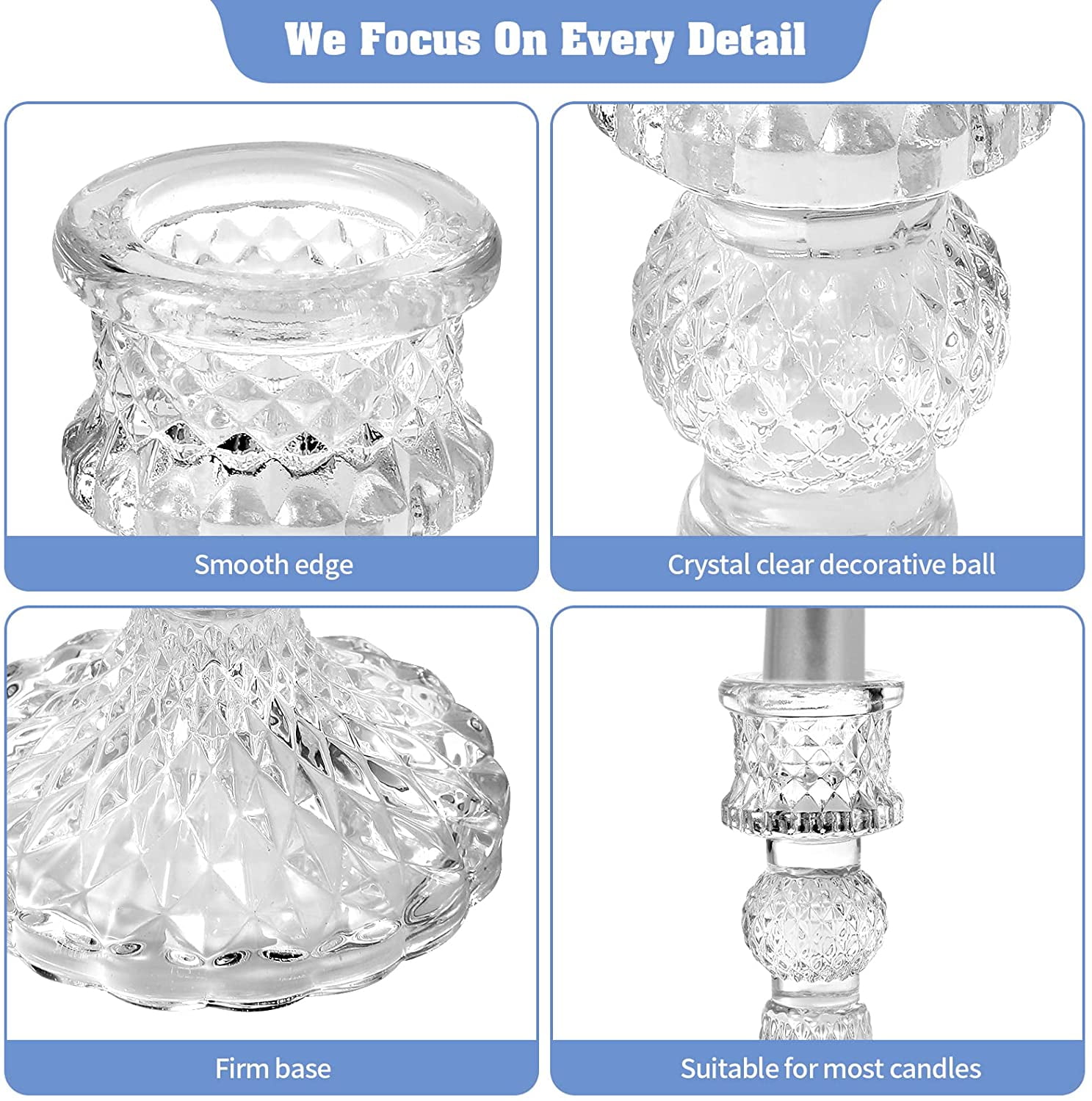 Saim 3 Pcs Glass Candle Holder, Taper Candlestick Holders Decorative for Wedding, Party & Windowsill Decor