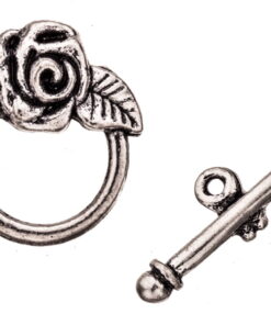 Flower With Leaf Toggle Clasp Antique-Silver Plated 17.4/23.4mmx19.2/7.3mm Sold per pkg of 4pair