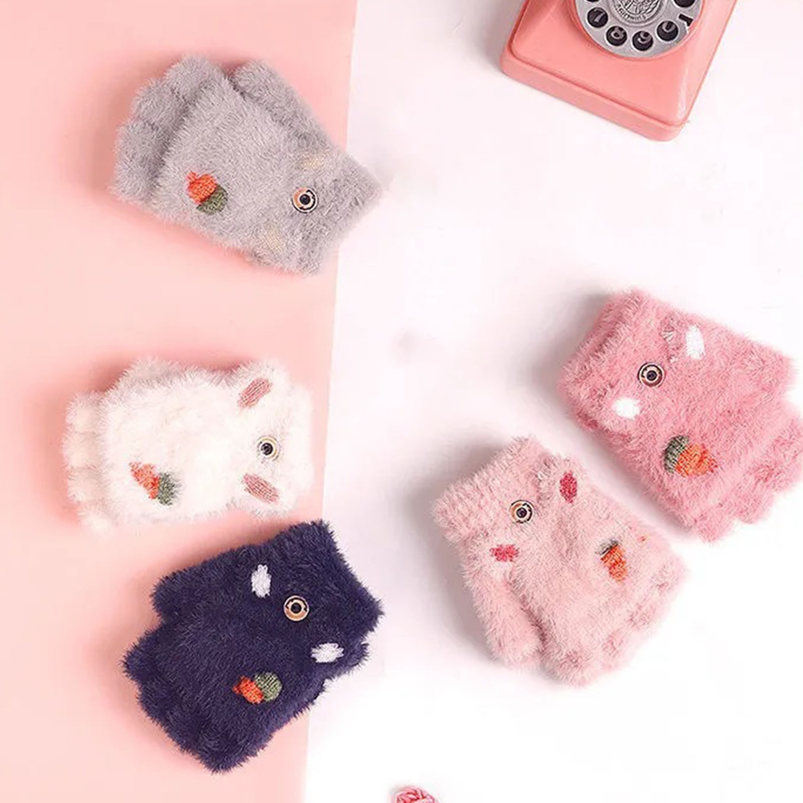 harmtty 1 Pair 3-7 Years Boys Girls Gloves Cartoon Carrot Pattern Autumn Winter Thicken Stretchy Gloves for School