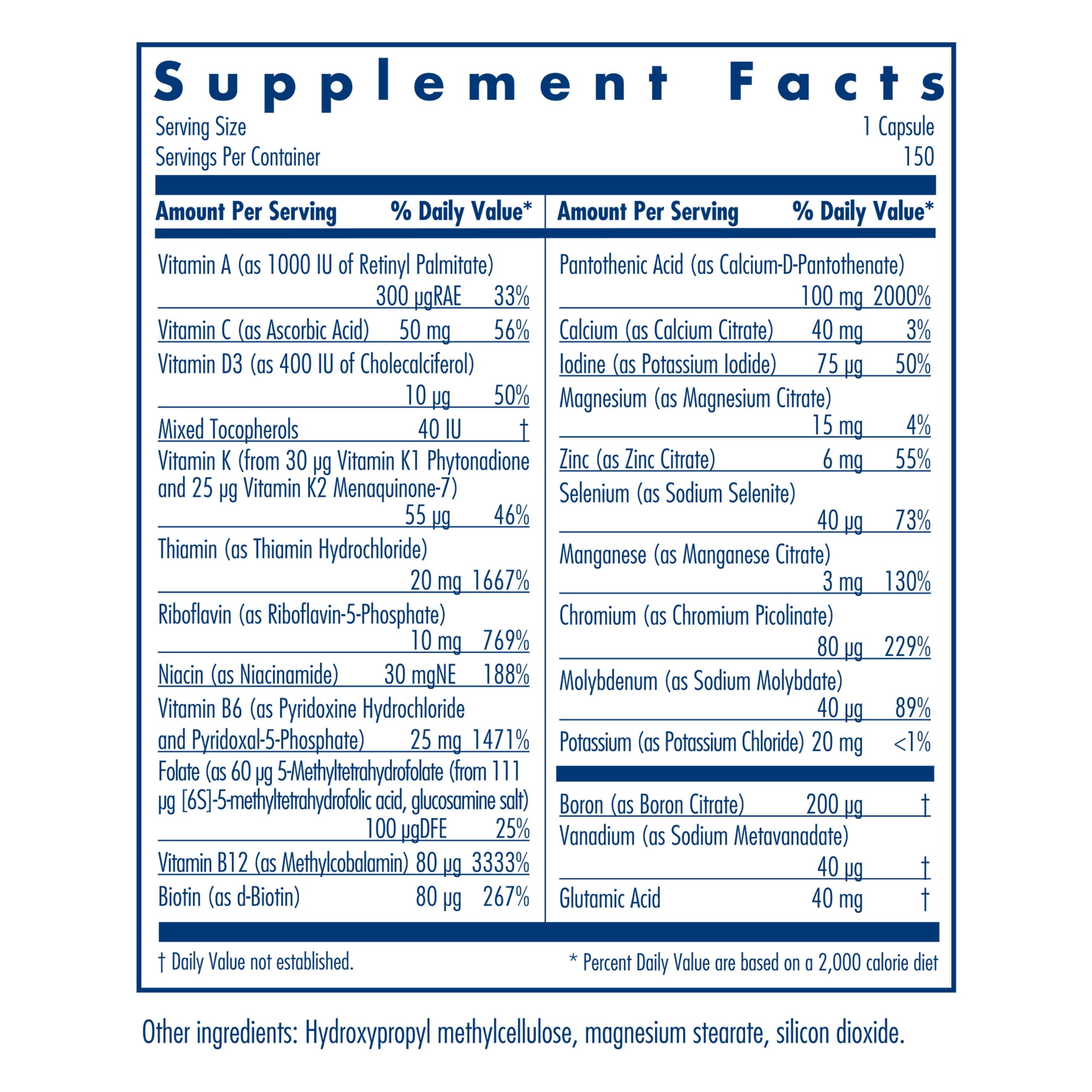 Allergy Research Group – Multi-Vi-Min without Copper and Iron – Hypoallergenic – 150 Vegetarian Capsules