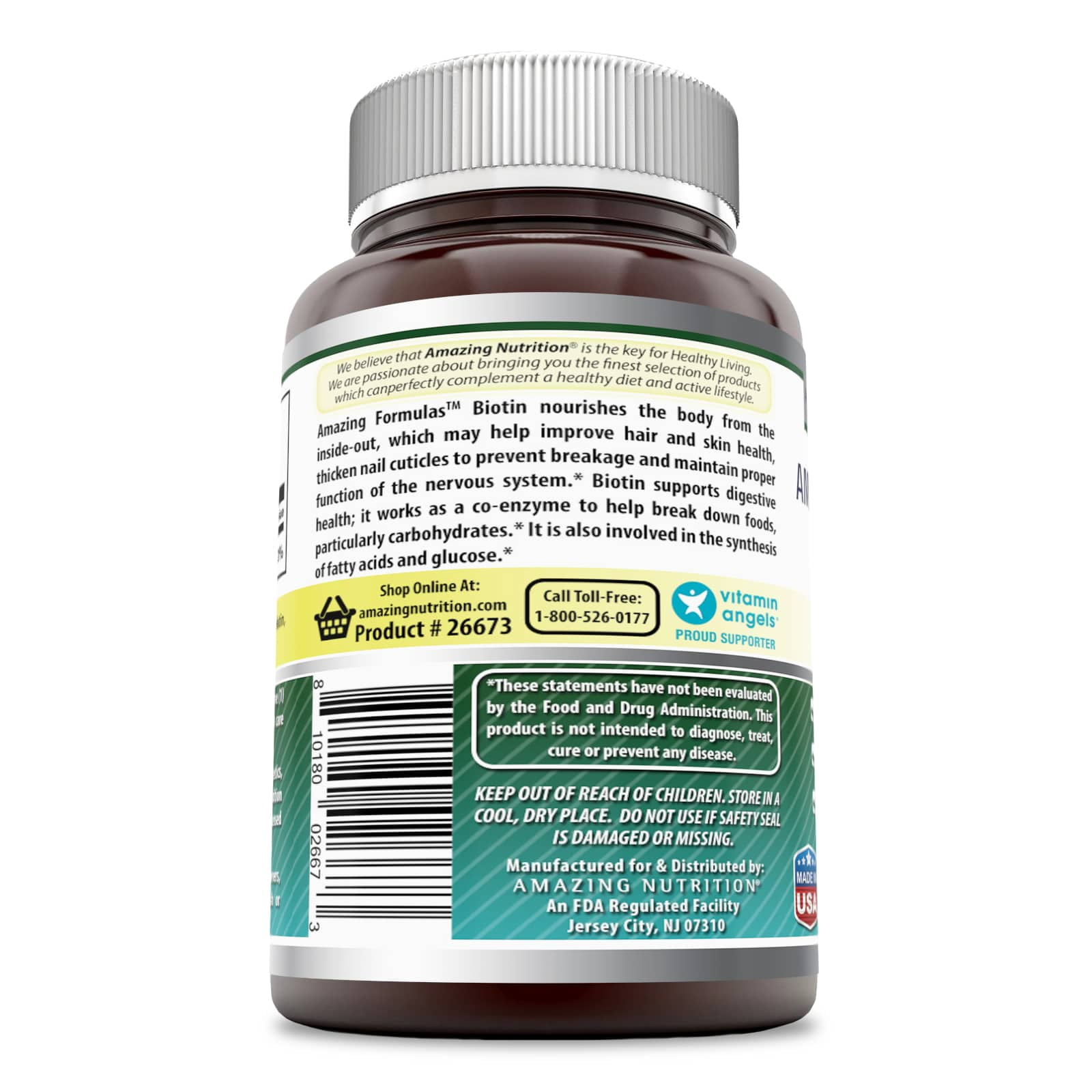 Amazing Formulas Biotin Supplement – 10,000mcg – 100 Capsules – Supports Healthy Hair, Skin & Nails – Promotes Cell Rejuvenation
