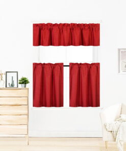 LUXURY 3PC KITCHEN CURTAIN RED K4 COLOR CURTAIN VALANCE AND TIERS 24′ ROD POCKET SHEER PANELS LIGHT FILTERING