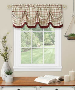 Country Farmhouse Plaid Tattersall Button Tuck Window Valance – Burgundy